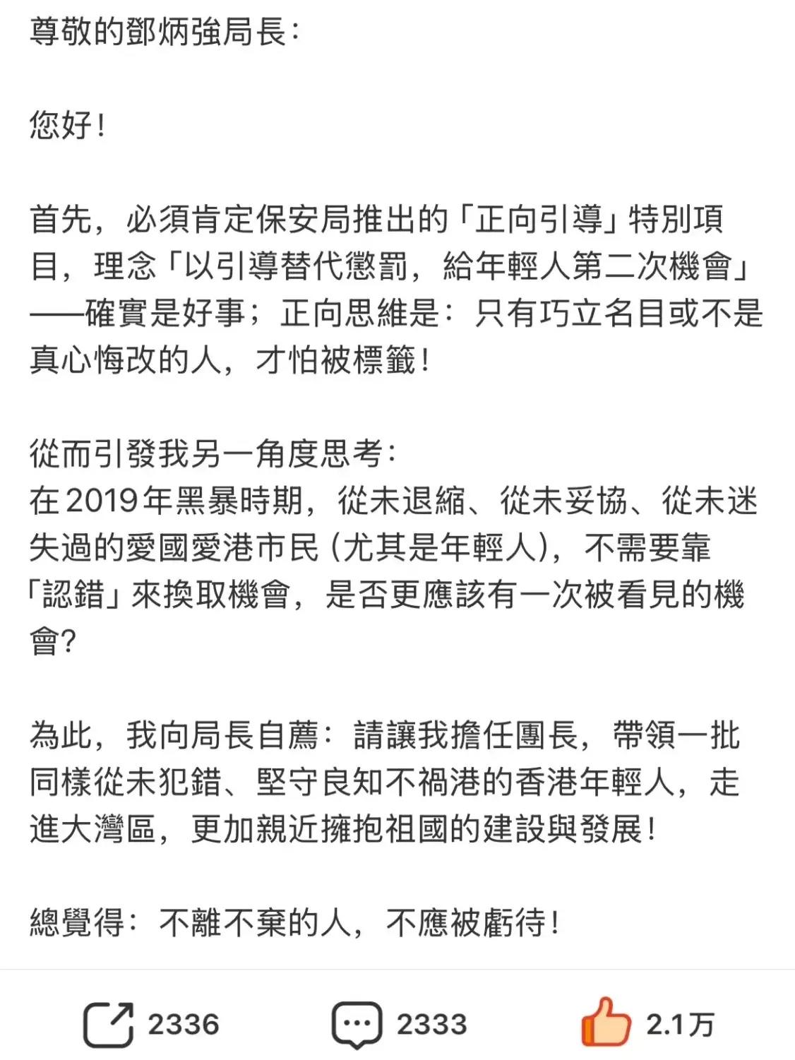 张敬轩此前主动公开过往不当言行,还申请加入香港保安局的正向引导项目,想担任青年导师。