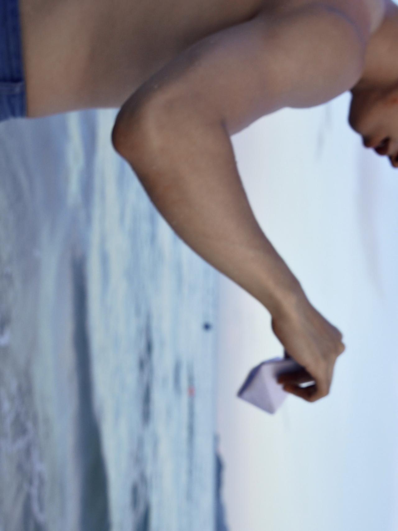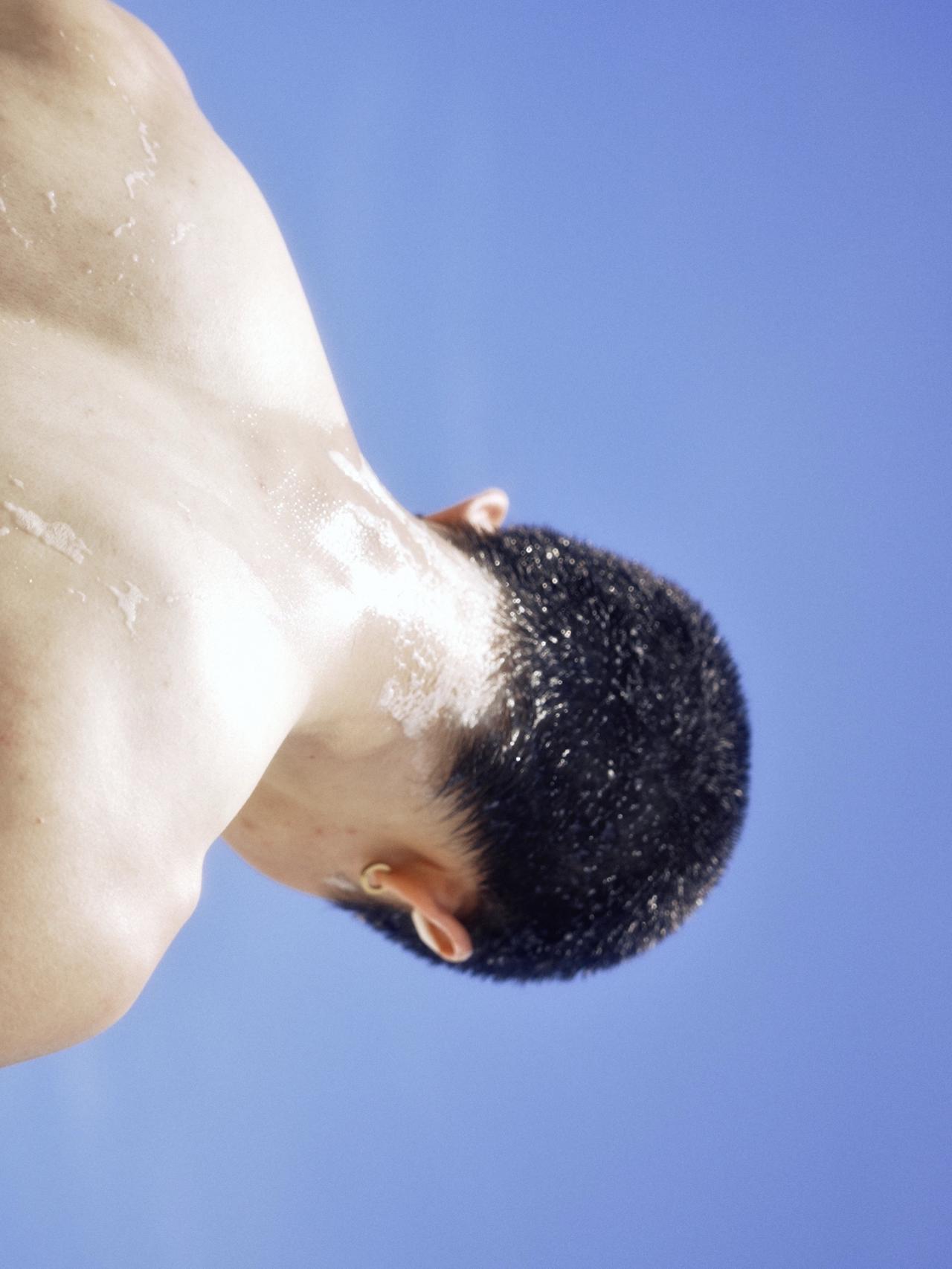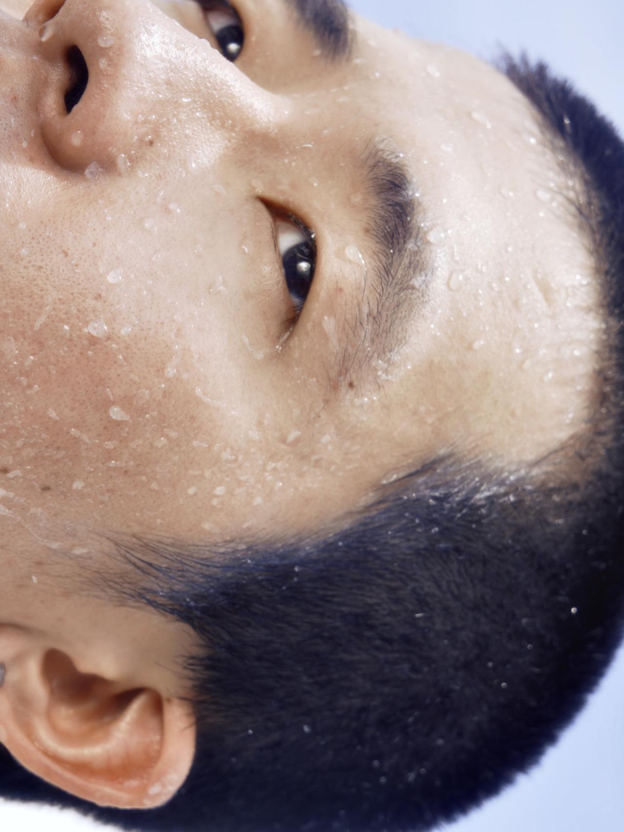 这个美女,为我们呈现了三种状态:一是撩水,二是睁开眼睛看着前方,三是微闭双眼看着