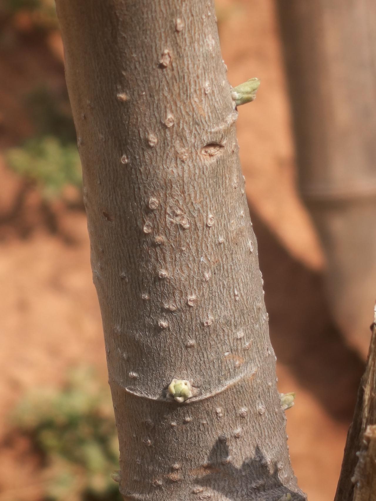 去年冬至时,一亲属送了我一大袋晒干的非洲叶,他说和茶叶共泡了喝,对我这个年龄血脂高、血压高的人很有用。我泡来一尝,觉得也不是多难喝,就坚持下来了。他送了我两颗培植好的非洲叶树苗,我就把它栽到自己家的花园里。经过上百天的浇灌培养,终于在春天里发芽了。