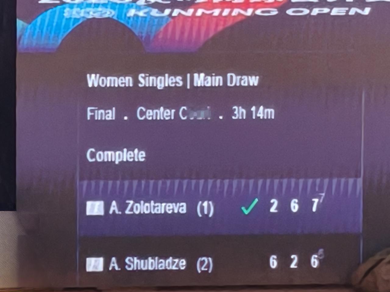 今天中午12点,昆明网球公开赛女子单打决赛,在两位俄罗斯选手之间展开。结果阿纳斯塔西娅以2:1战胜同胞亚历山德拉夺得冠军。