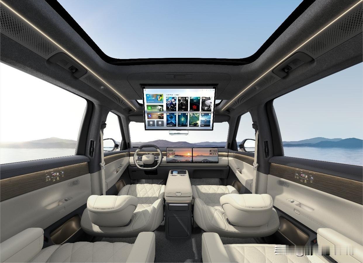 内饰配置,包括前排15.6英寸中控双联屏,后排21.4英寸吸顶屏以及3块Smart Surface魔术屏等