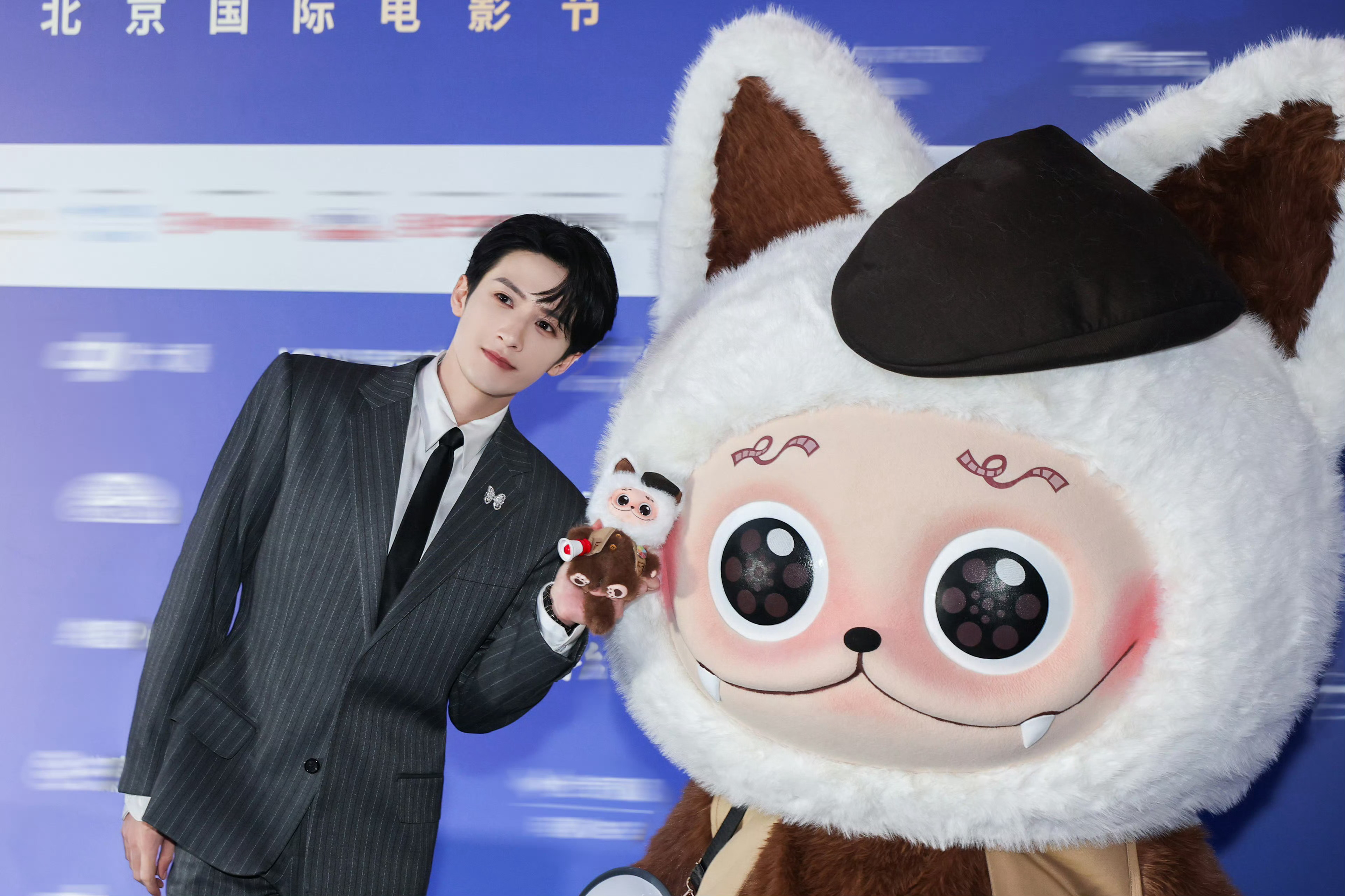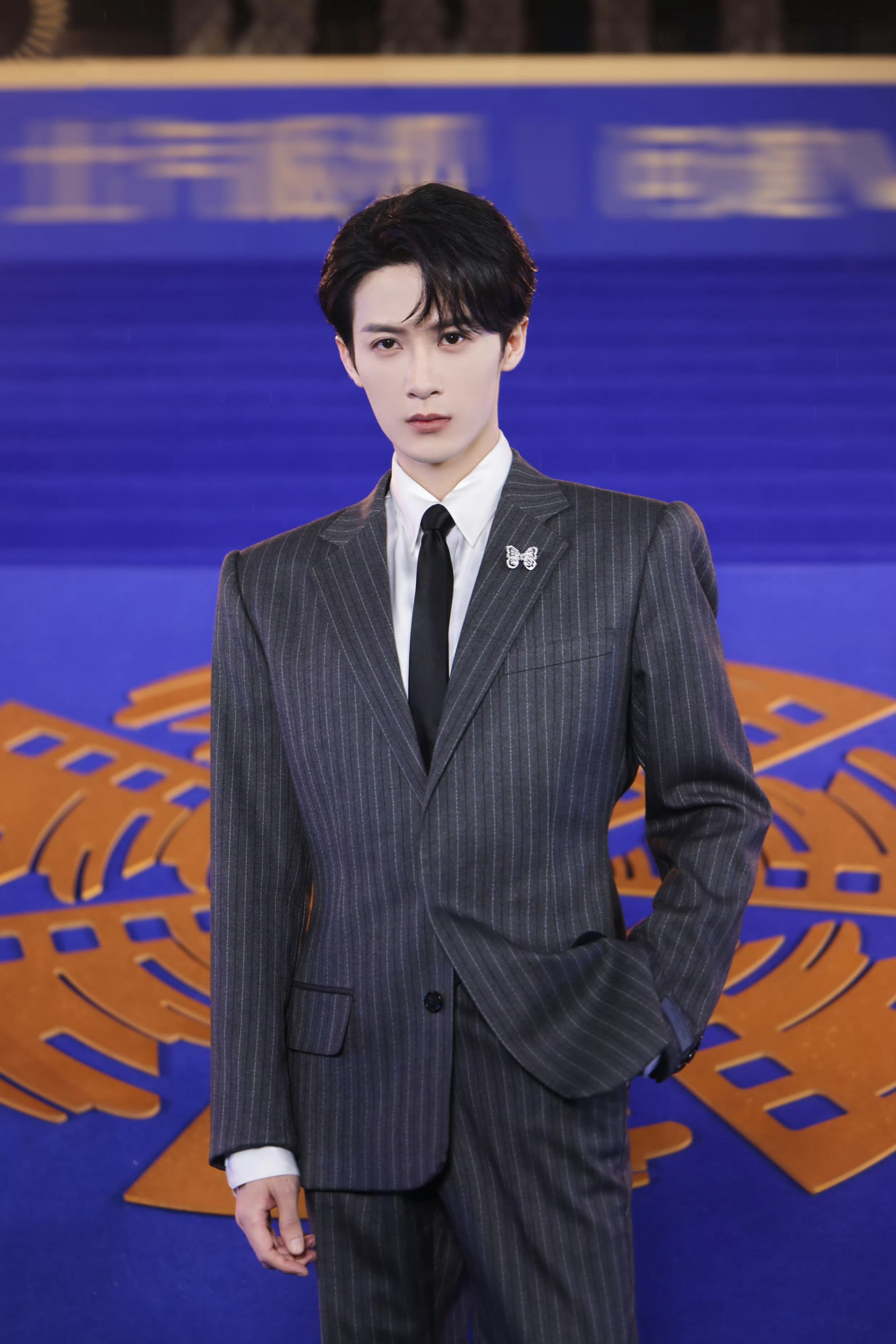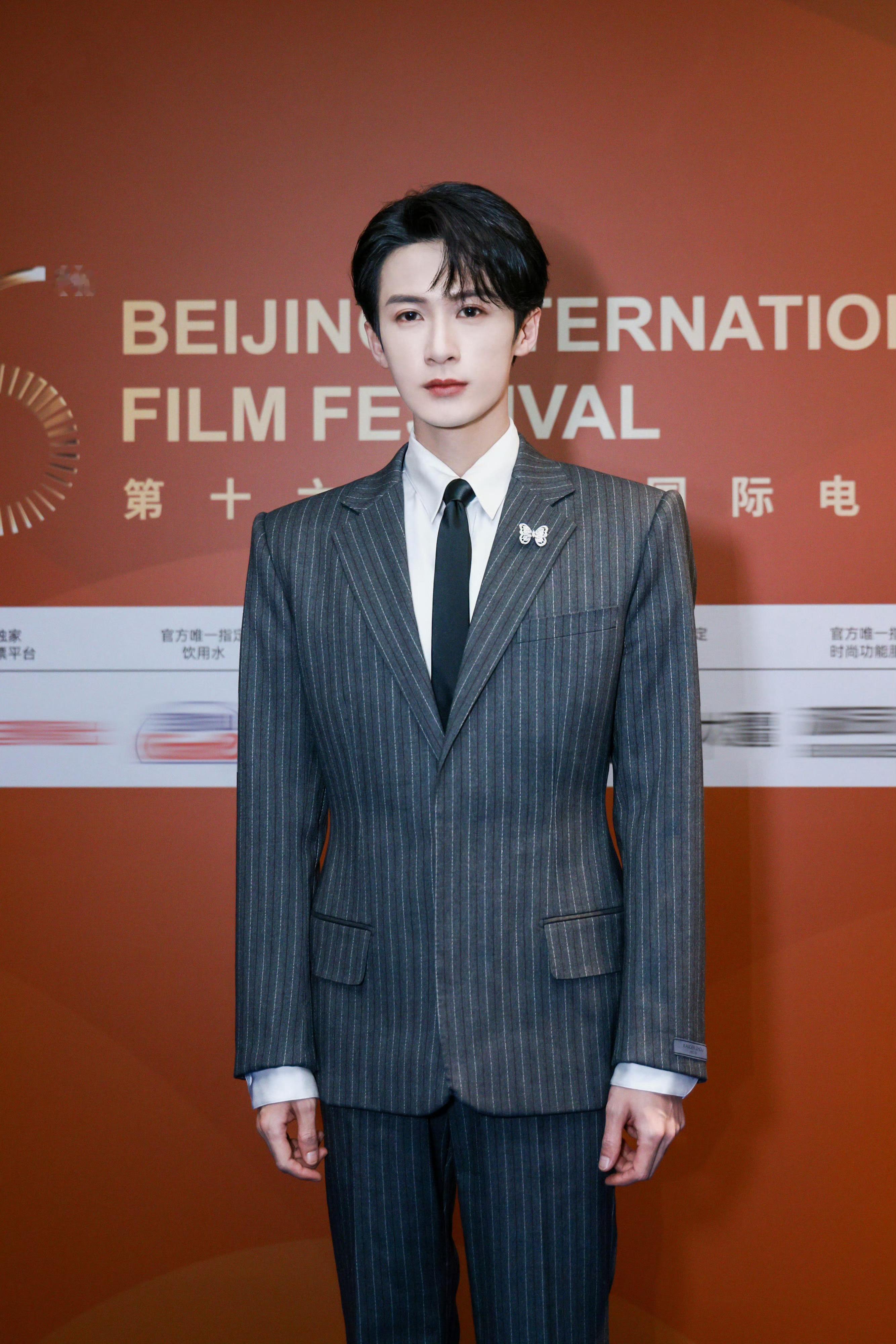 檀健次|北影节Look🎬XANDER ZHOU灰色竖条纹西装搭配De Beer