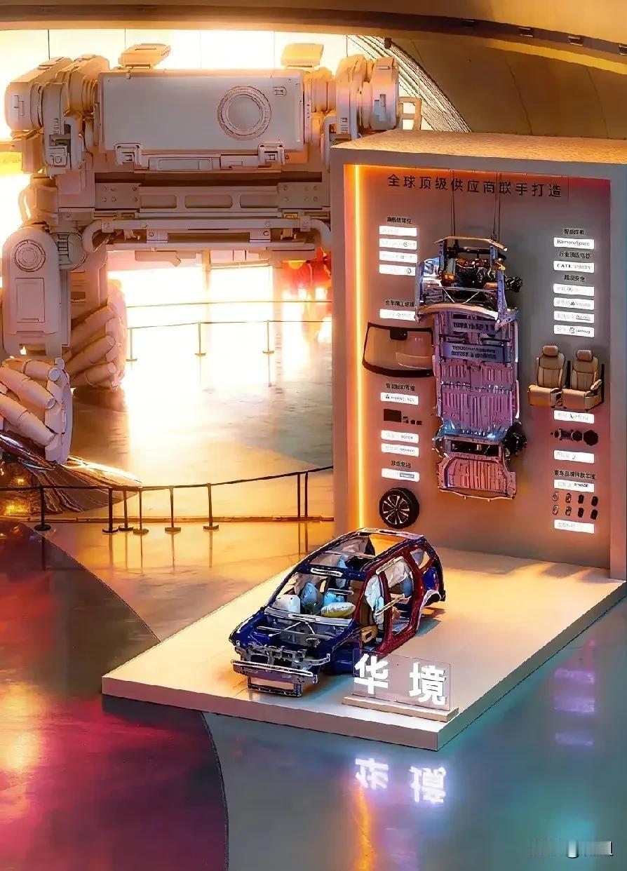“这叫华为乾电防碰撞系统CAS 4.0,20种危险场景它能主动防。这车身子骨也硬,高强度钢和铝合金占了85%,真要遇到事,能扛得住。”