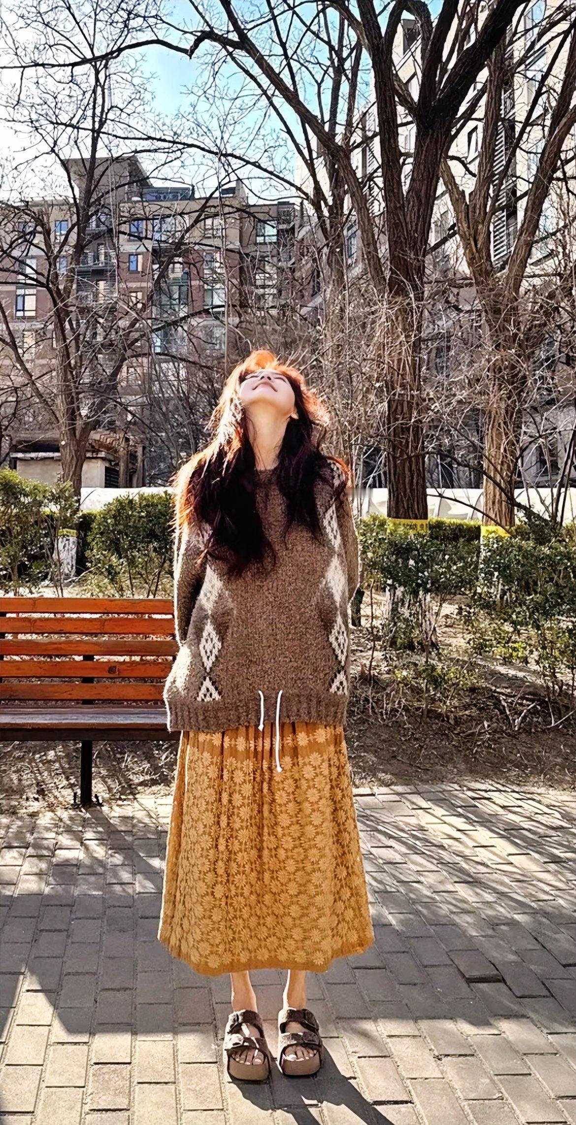 说实话,她的穿搭并非那种普通人难以驾驭、根本穿不出门的类型。毛衣、牛仔裤、浅色裙子,全都是基础款式,然而穿在她身上,就是让人看着格外舒服。真不愧是学设计出身的。