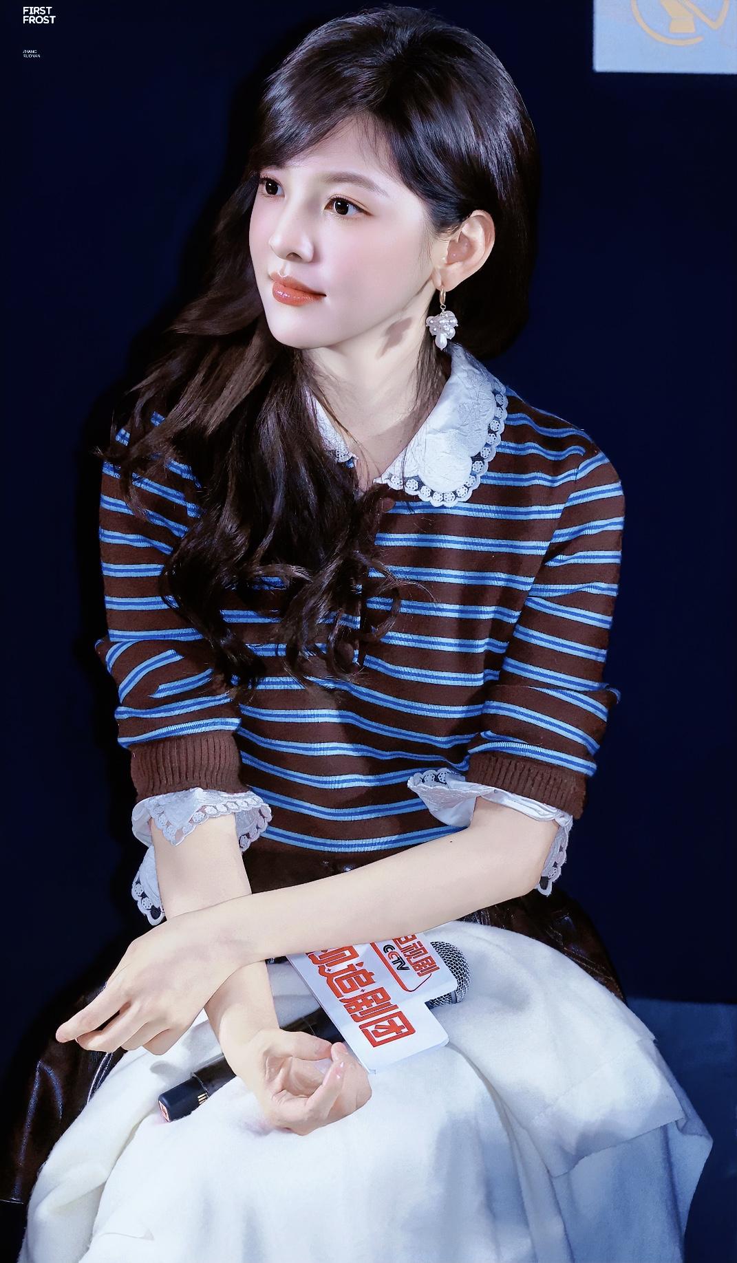 这是不久前《冬去春来》剧组参加媒体见面会时的现场照片,女主章若楠的这一身穿搭实在是美极了!