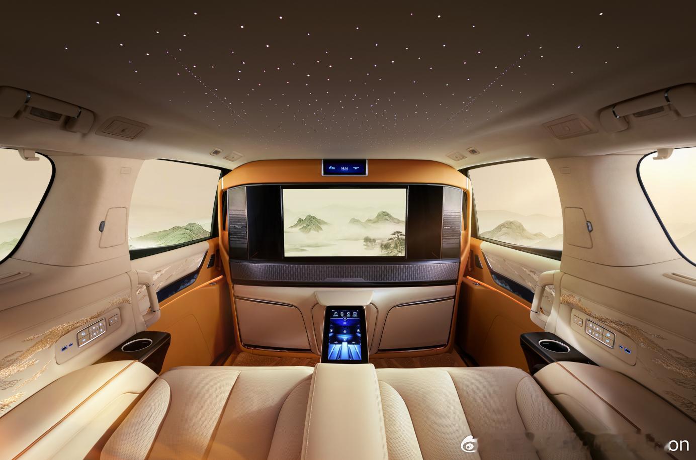 136,092针纯手工“江山如画”主题刺绣打造环抱式山水座舱,同级唯一15mm手工割绒进口羊毛脚垫复刻山水流痕意境,星河绣帷星空顶棚配备8大星空模式与语音触发流星功能,让用户入座即享“人在车中坐,如在画中游”的沉浸式体验。