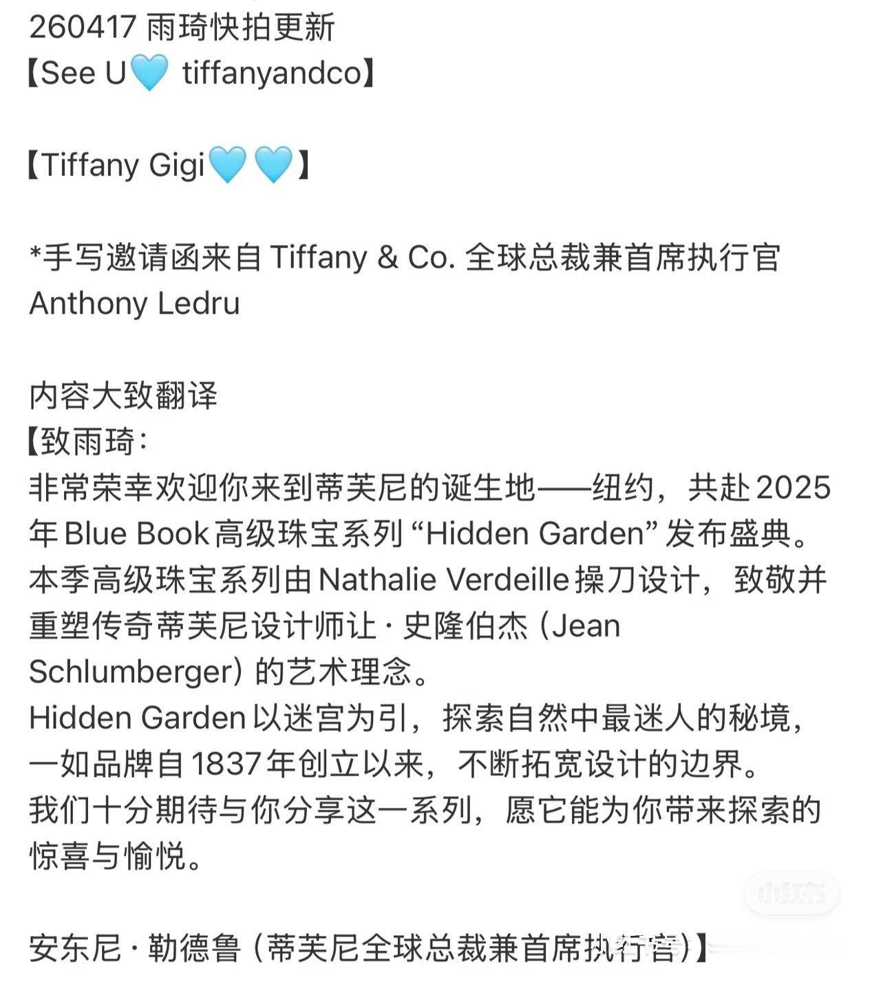 宋雨琦纽约高珠展唯一受邀中国面孔宋雨琦获邀纽约高珠展,品牌执行官手写邀请函诚意十