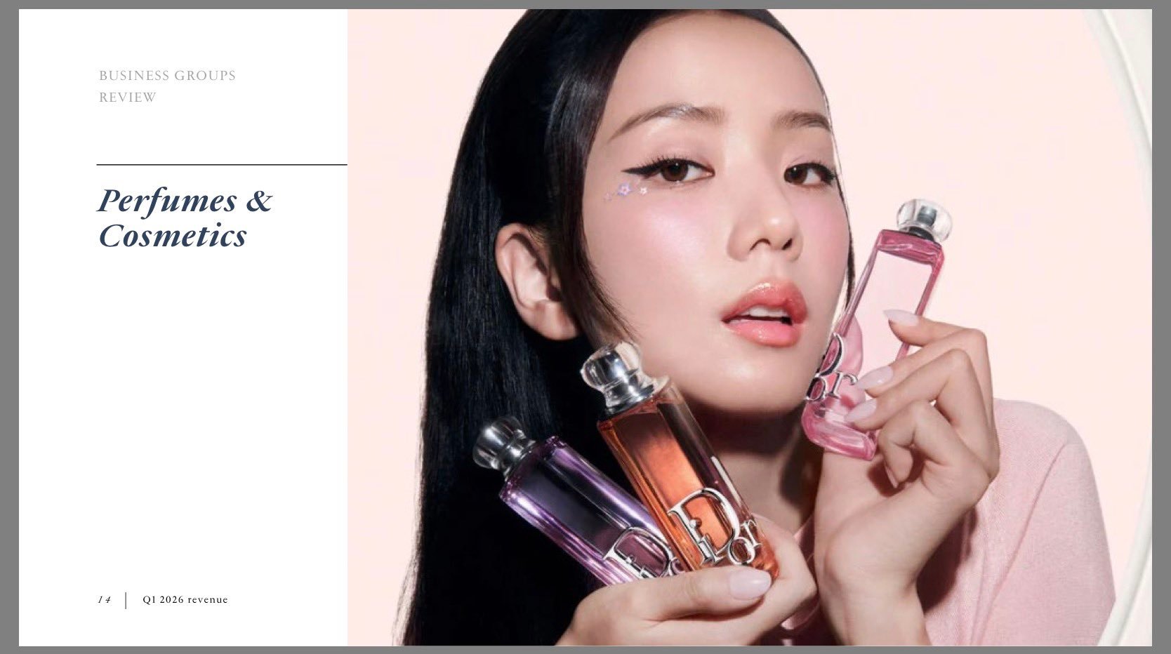 JISOO 的形象出现在 LVMH 2026 年第一季度香水与化妆品演示中。
