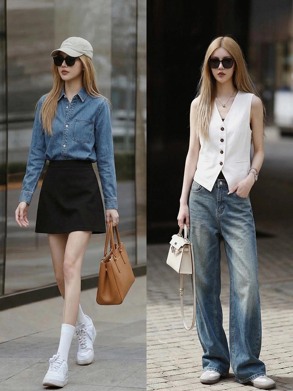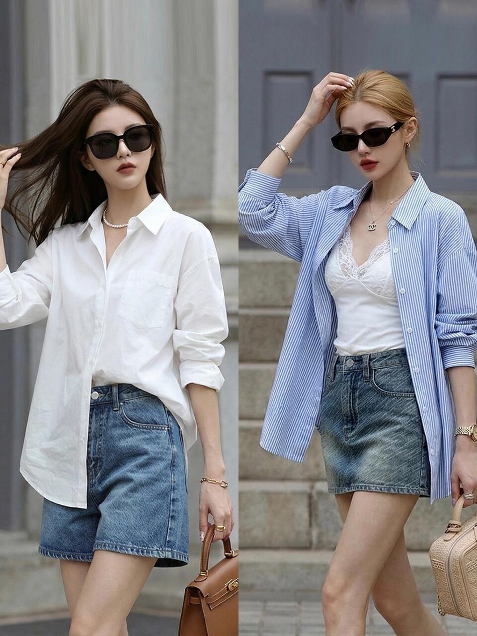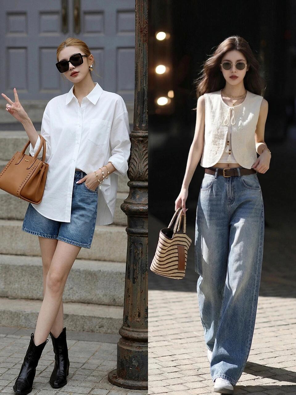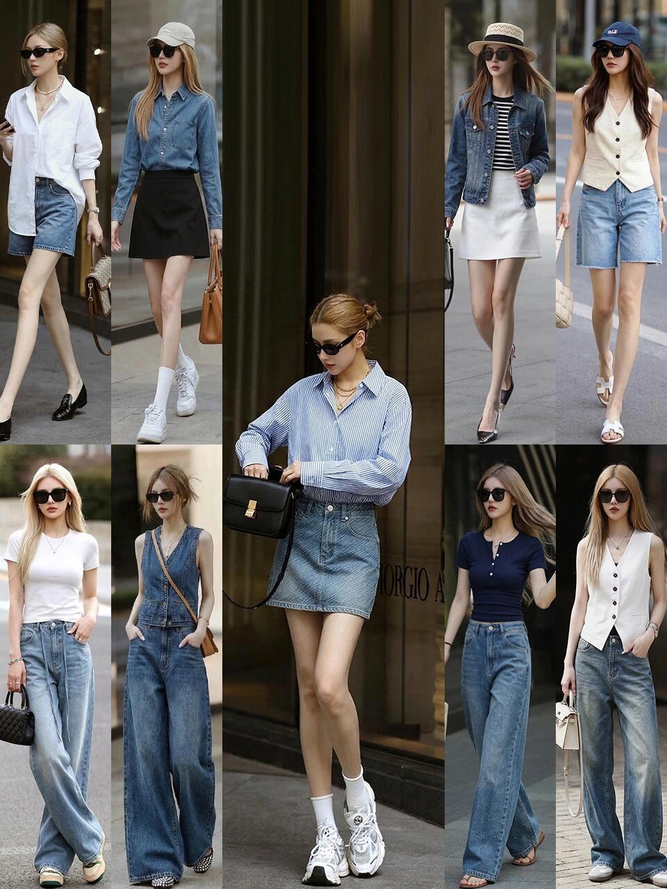 牛仔短裤清爽随性,配白衬衫、马甲都超有范儿;牛仔短裙甜酷兼具,叠穿蓝条纹衬衫氛围感拉满。从通勤到出游,牛仔单品适配各种风格,轻松打造不费力的时髦感!