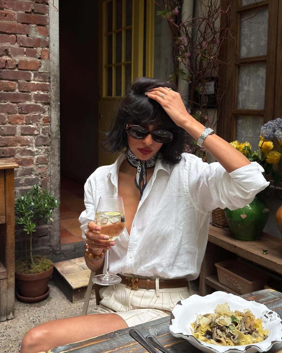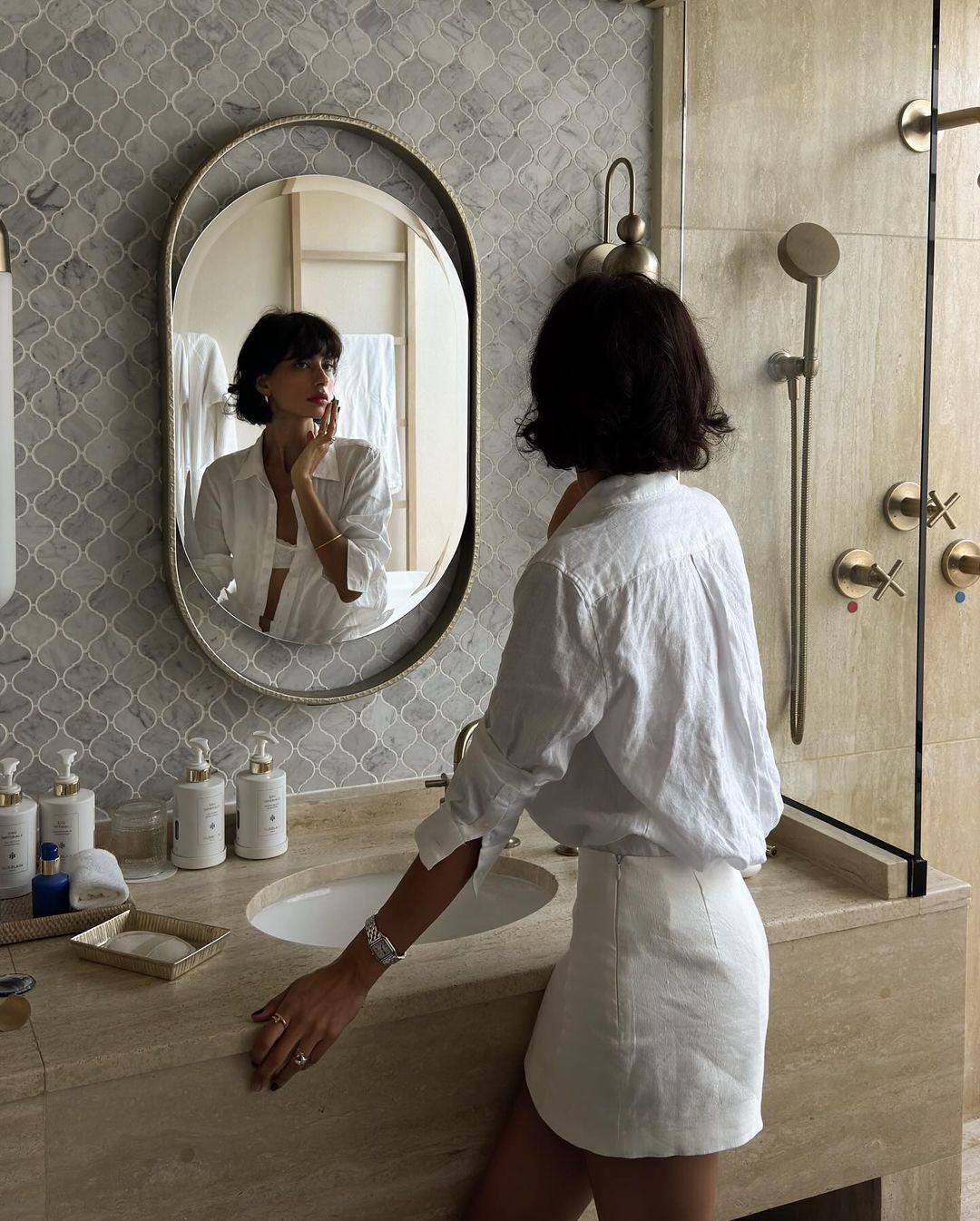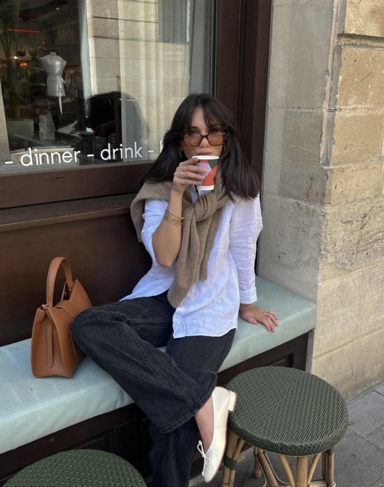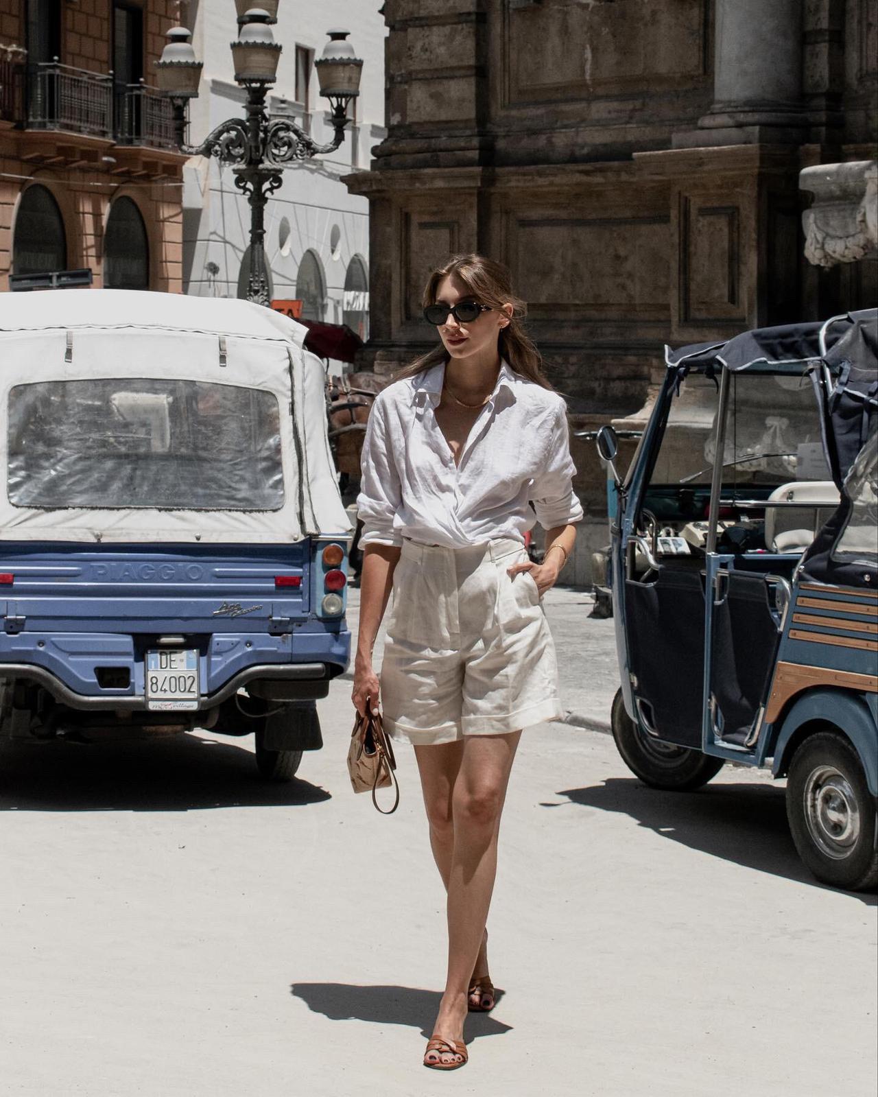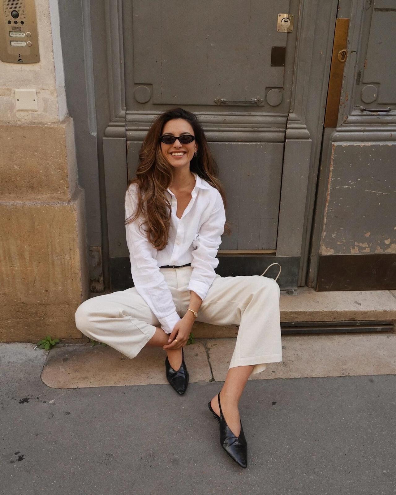 白色亚麻衬衫自带松弛肌理感,轻松拿捏法式慵懒氛围。