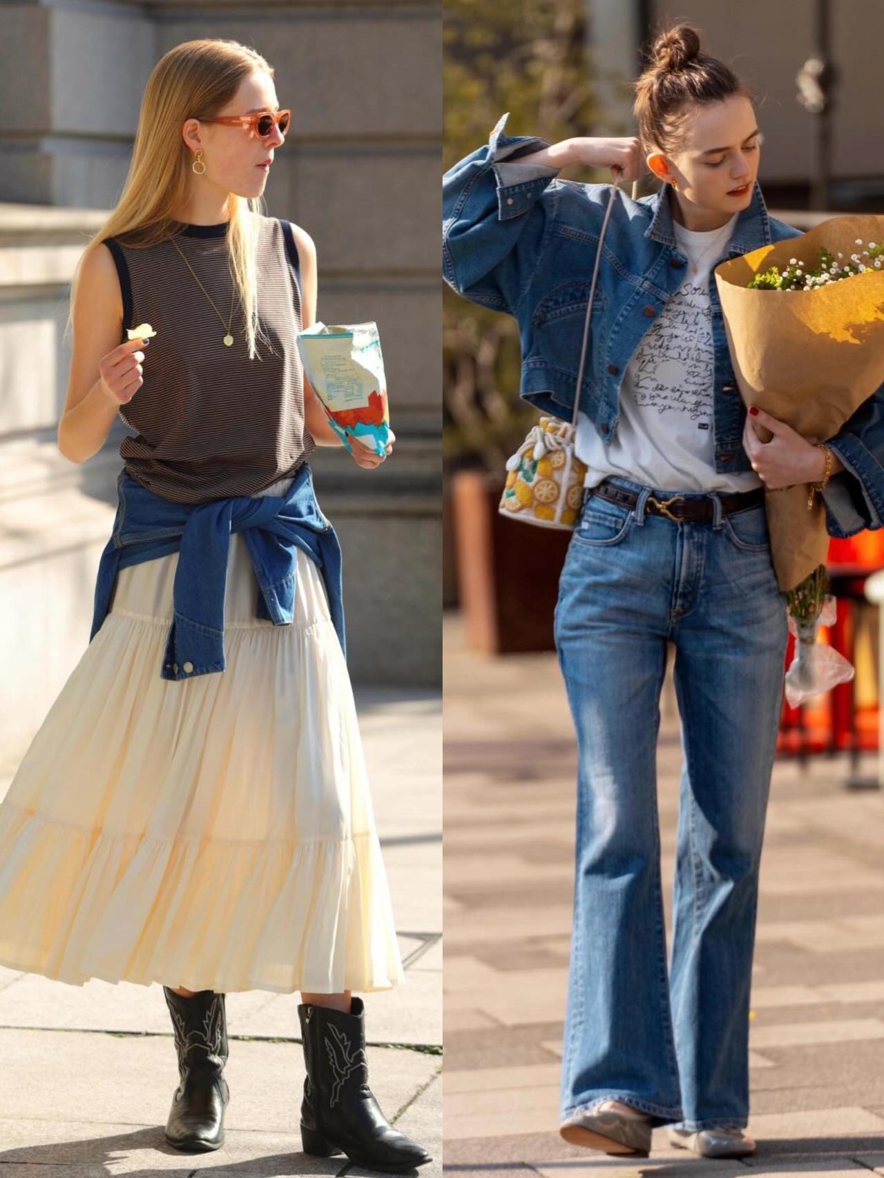 短款T恤搭阔腿裤,露腰显瘦又慵懒;碎花长裙配白袜尖头鞋,甜酷感拉满;牛仔外套叠穿、衬衫系腰,轻松拿捏复古氛围。用墨镜、帆布包、草编帽做点缀,不管是日常出街还是通勤,都能穿出不费力的时髦感,舒适又上镜,夏天这么穿,氛围感直接拉满!