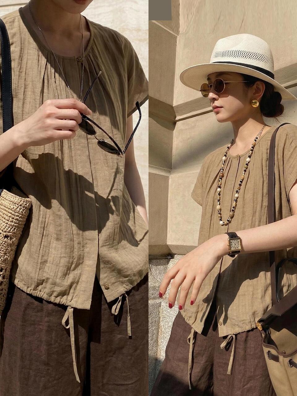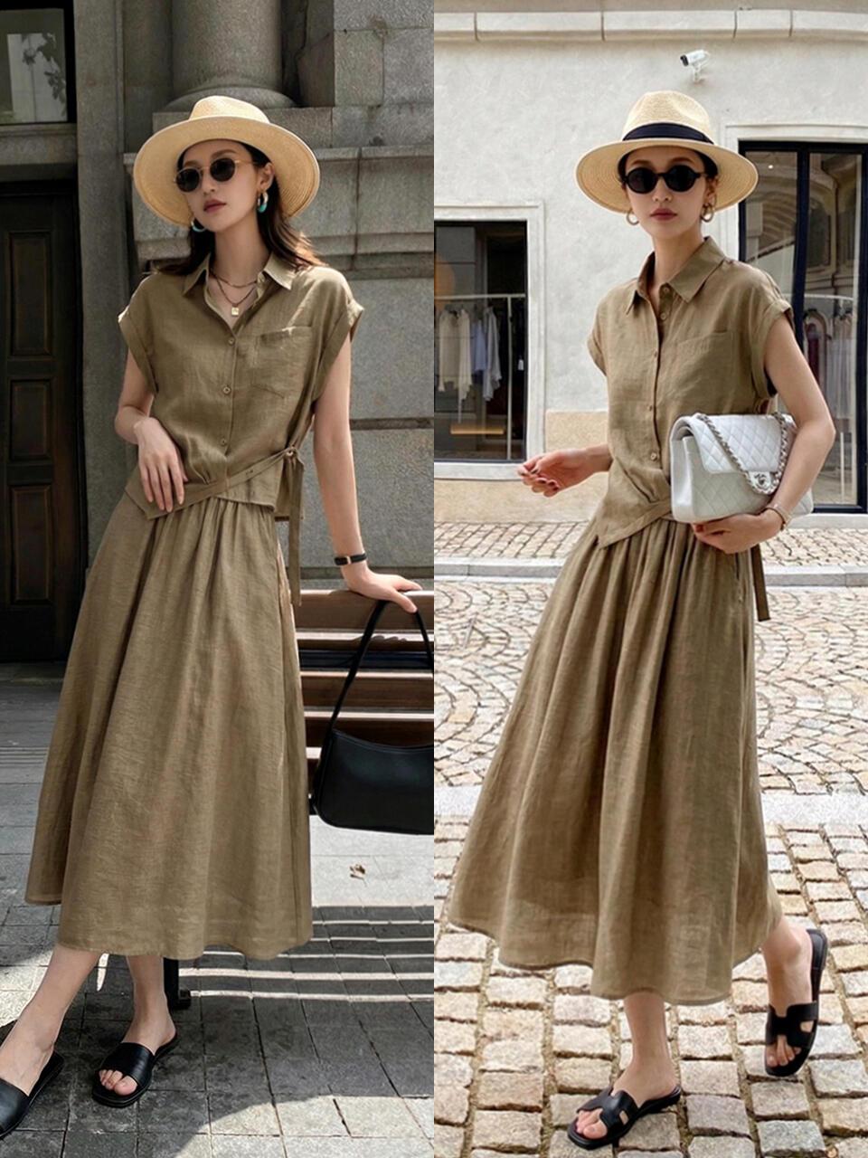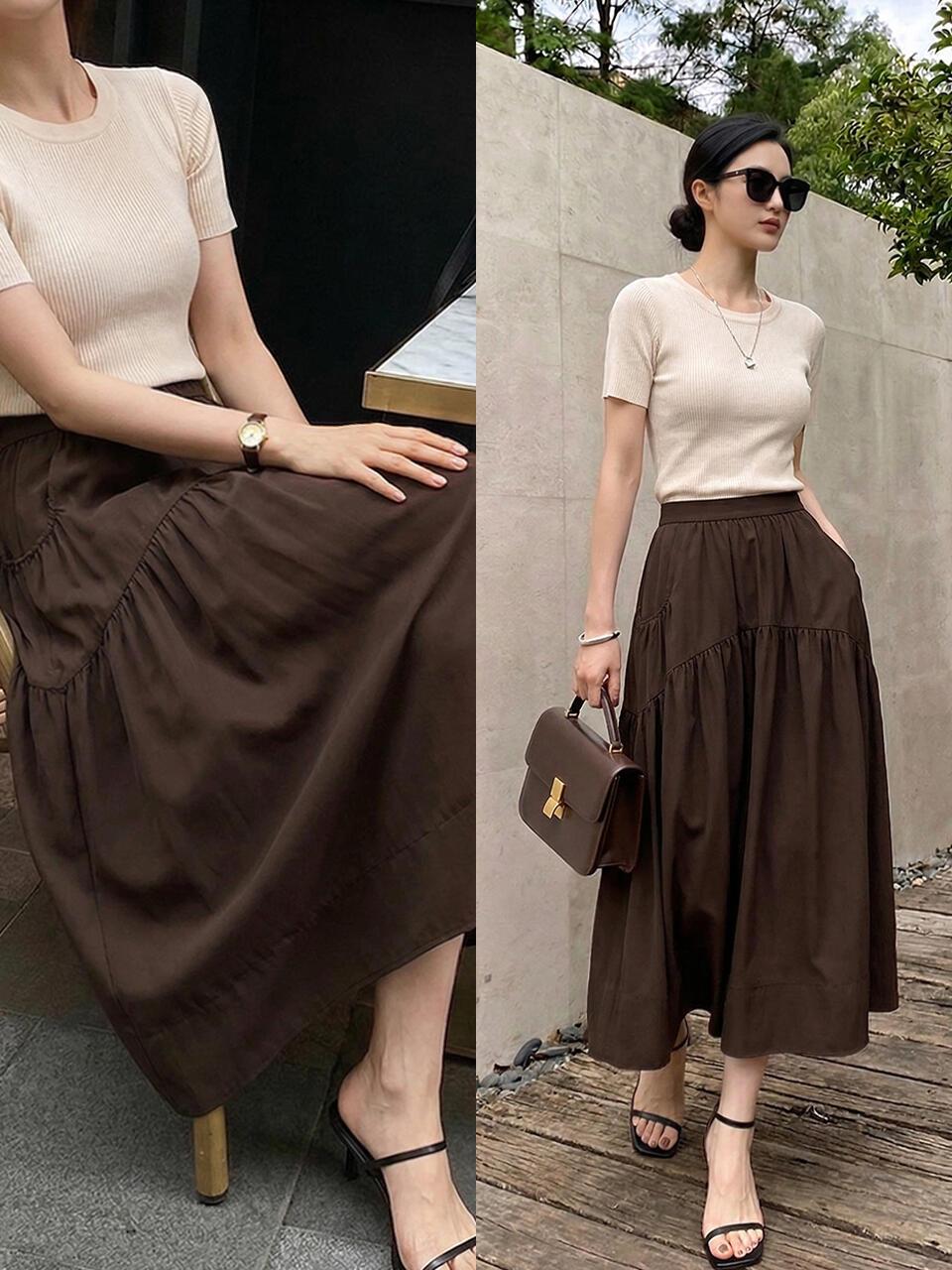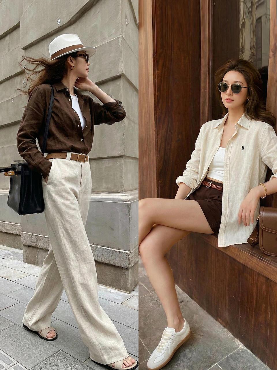 米白针织搭咖色大摆裙,温柔又显气质;同色系亚麻套装,慵懒氛围感拉满,通勤度假都适配。用深浅咖色做层次,搭配草编包、礼帽等配