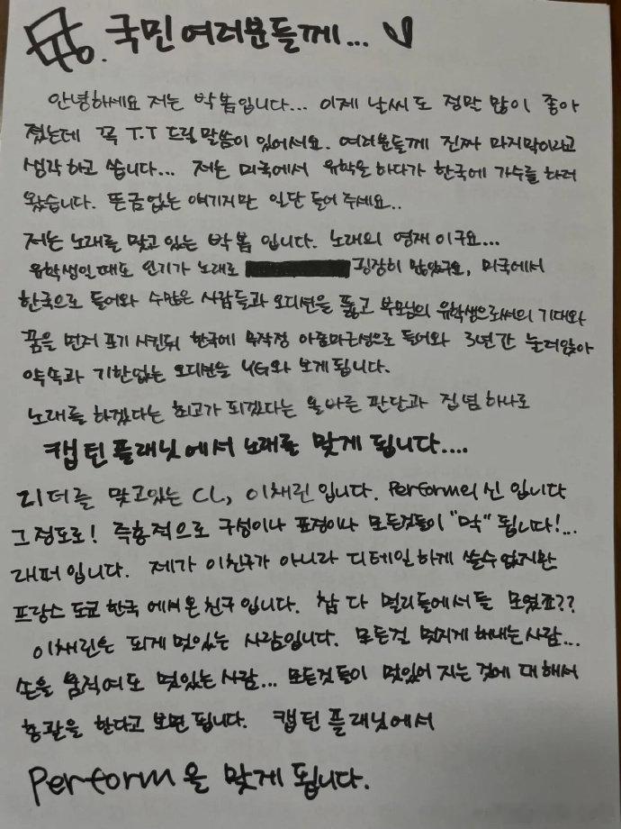 朴春手写信夸赞2NE1成员 朴春手写信夸赞2NE1成员,这是怎么了! 朴春手写信回应药物事件