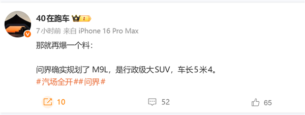 若M9L落地,将进一步拓展鸿蒙智行在高端豪华SUV市场的覆盖,剑指百万级行政座驾细分领域。
