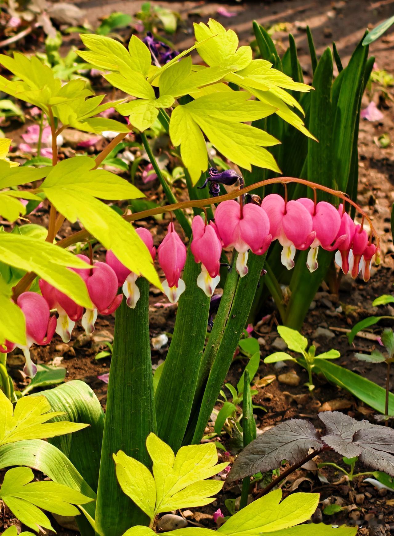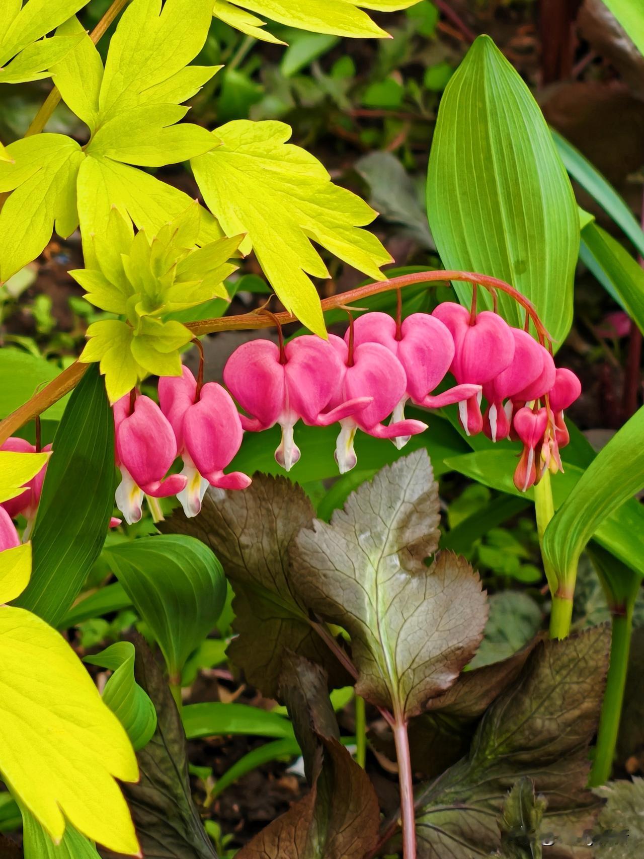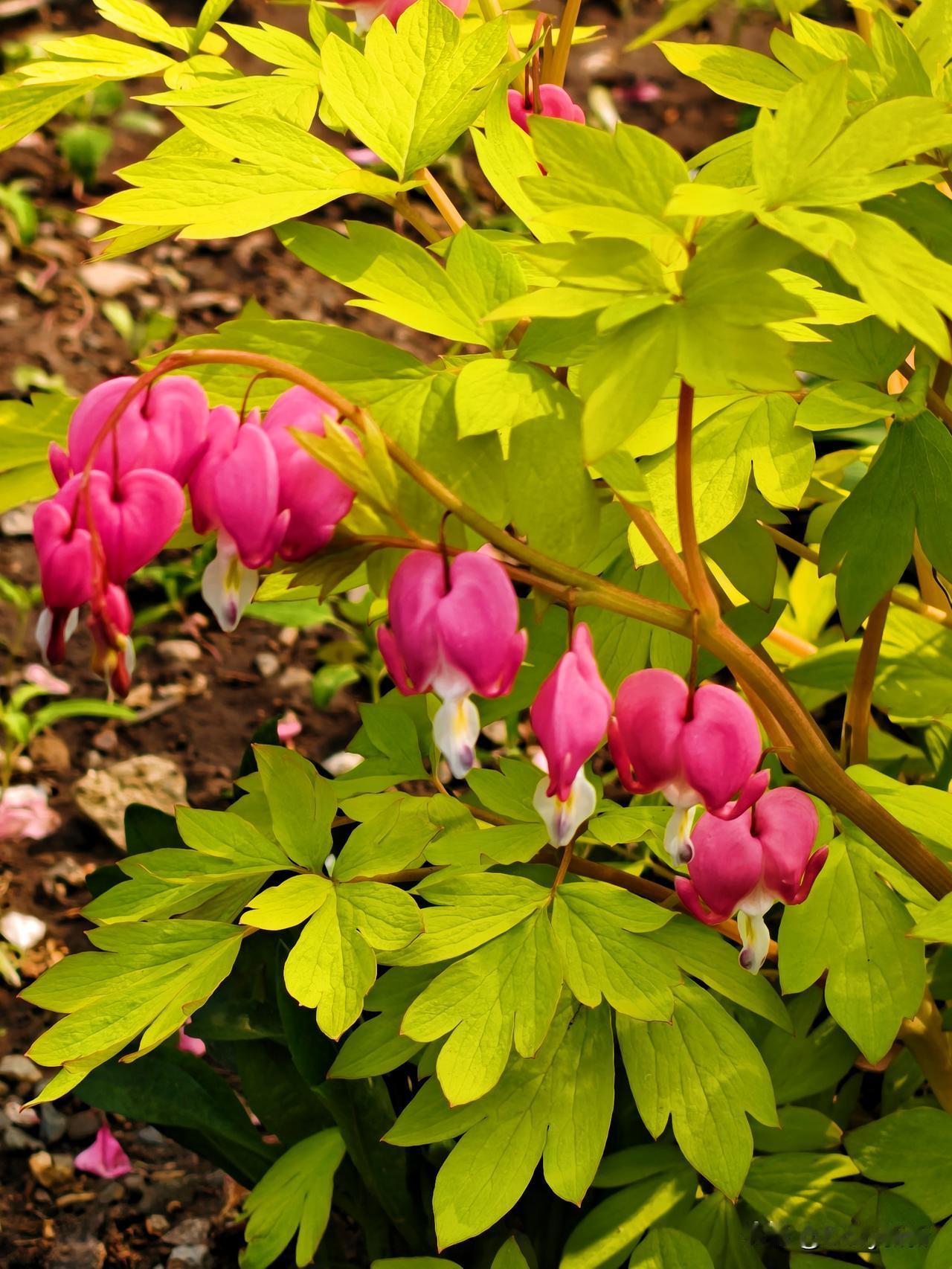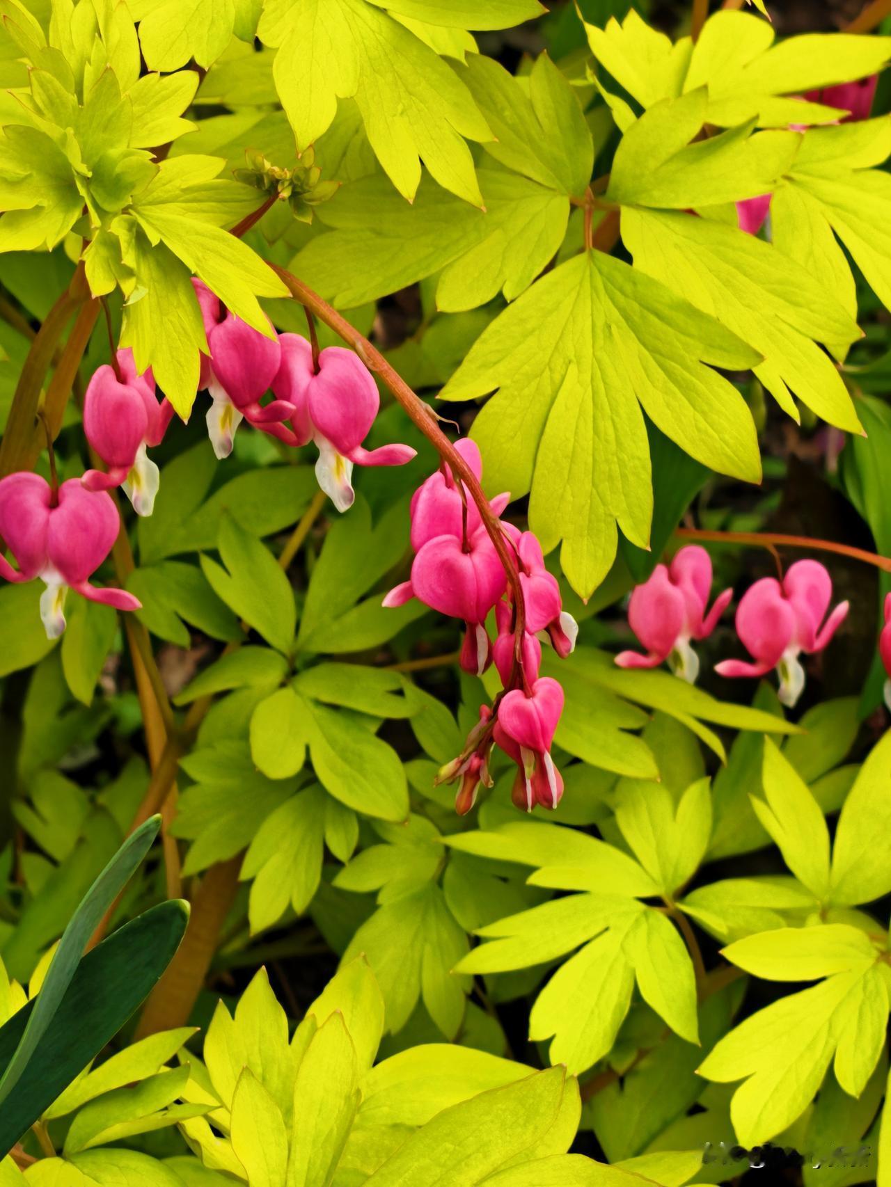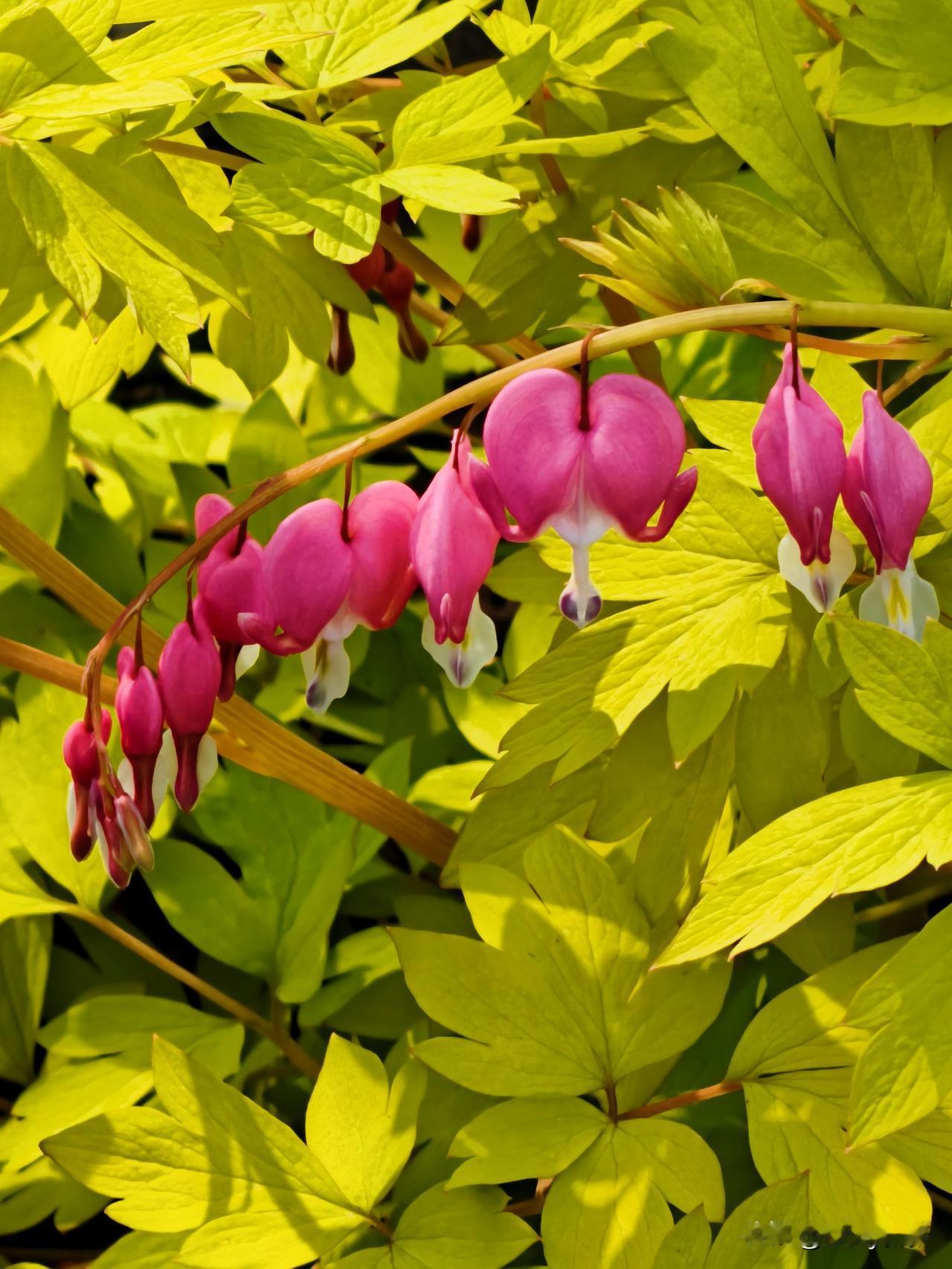 七绝·荷包牡丹 一串玲珑缀翠枝,芳心暗绾寄相思。 不与群芳争艳色,独悬心事待君知