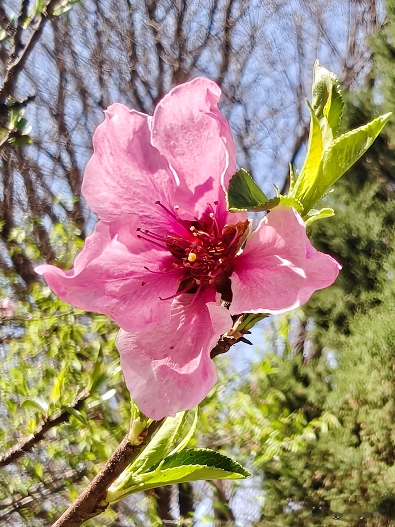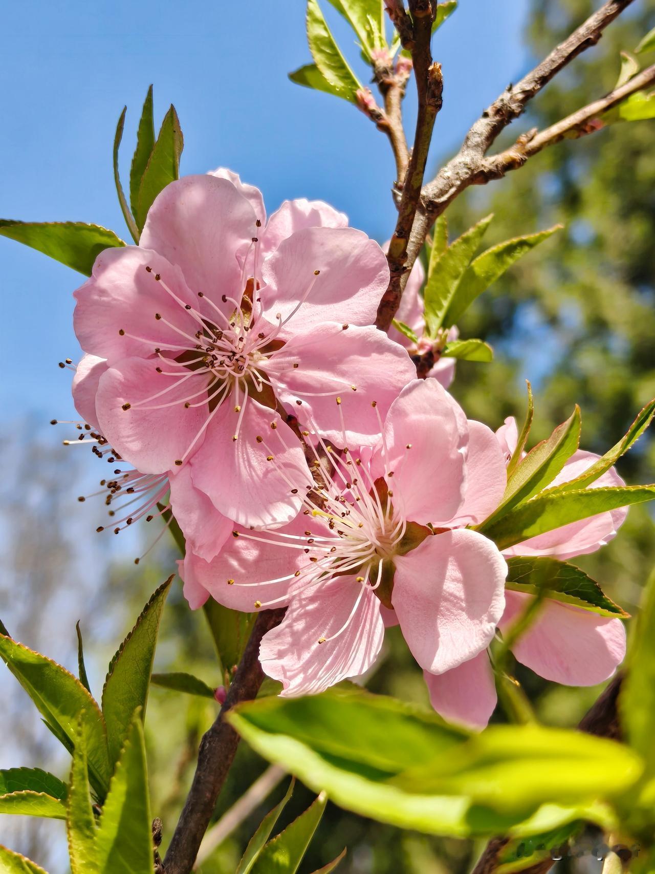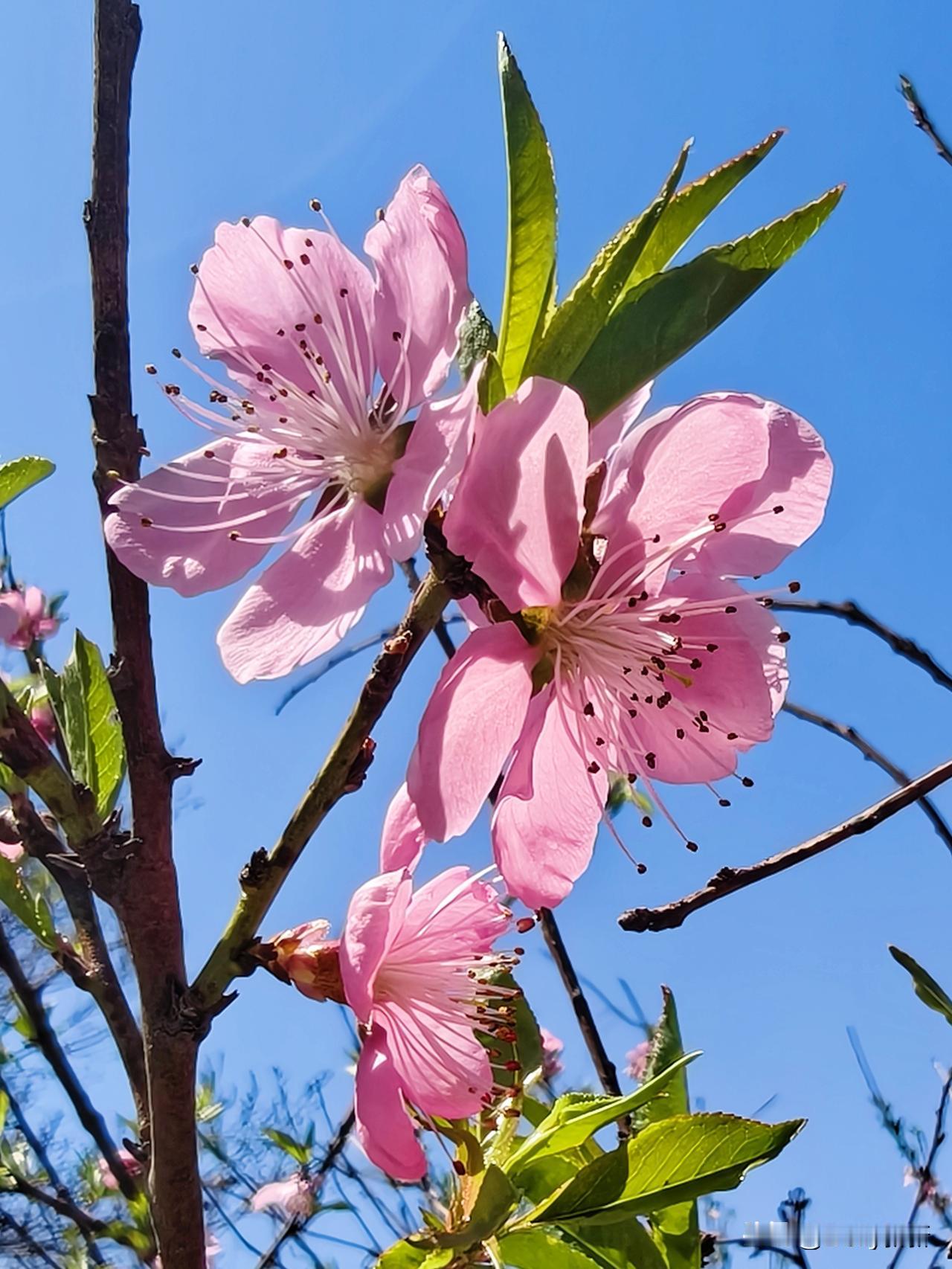 七律·桃花 东风吹暖满庭芳,桃蕊争开映画墙。 艳若丹霞铺野径,清如淡墨染诗行。