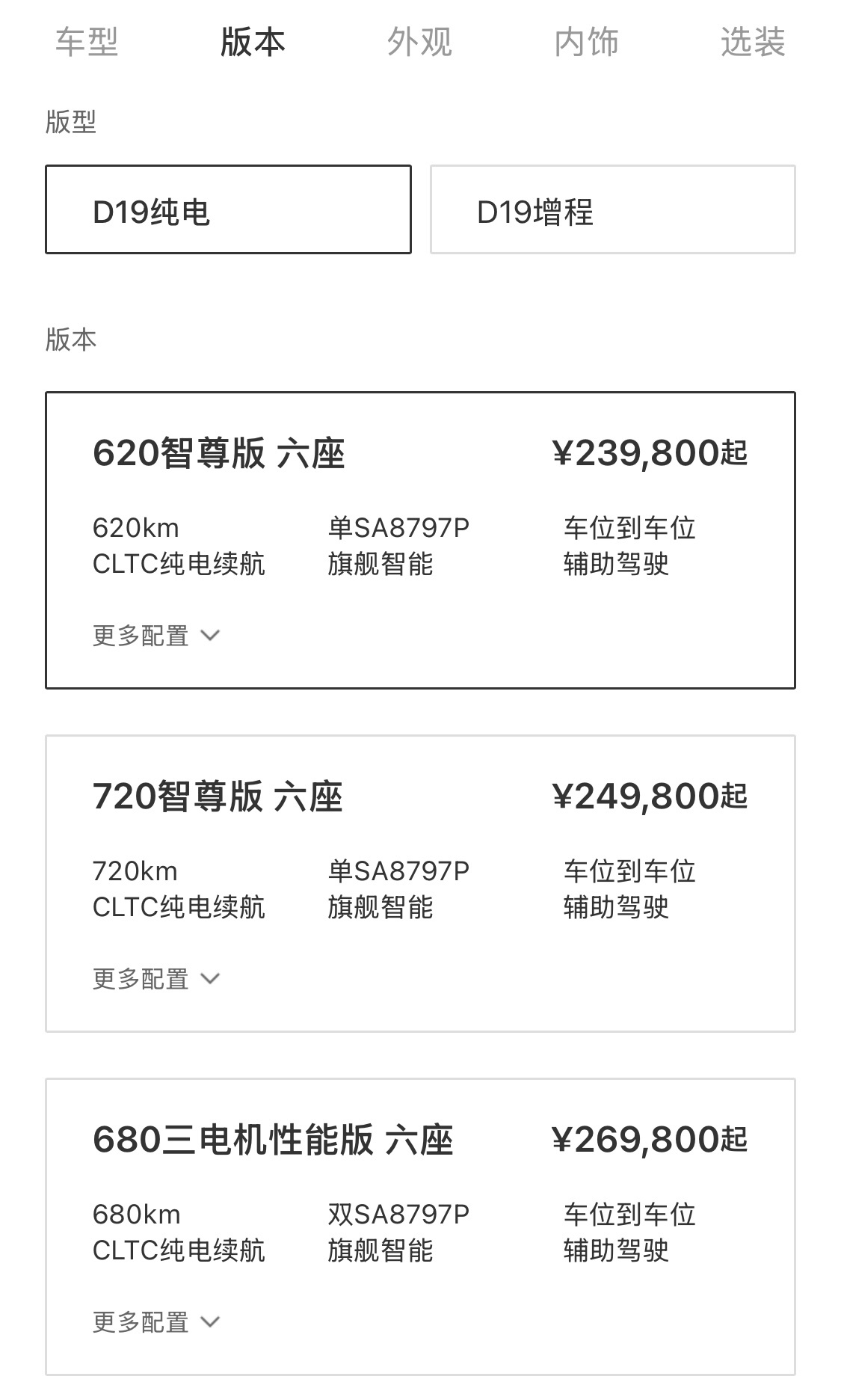 26.98万:纯电680三电机性能版,六座,百公里加速3秒级零跑D19满配豪华上市21.98万起