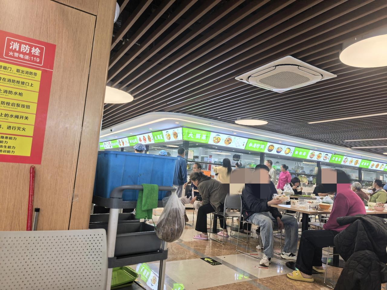 吃饭的有陪护病人及家属,也有刚下手术、匆匆扒两口的医生护士。大家端着热饭找空位,人虽然多,但没有外边食堂的喧闹,很多人只是默默扒着碗里的饭,连说话都带着几分疲惫。