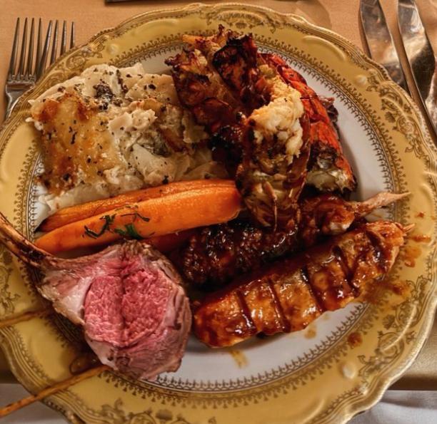 再看看懂王的海湖庄园,吃得太好了。龙虾、牛排、肉肠、面饼以及各种山珍海味,应有尽有。不得不说,实在是有点讽刺了。