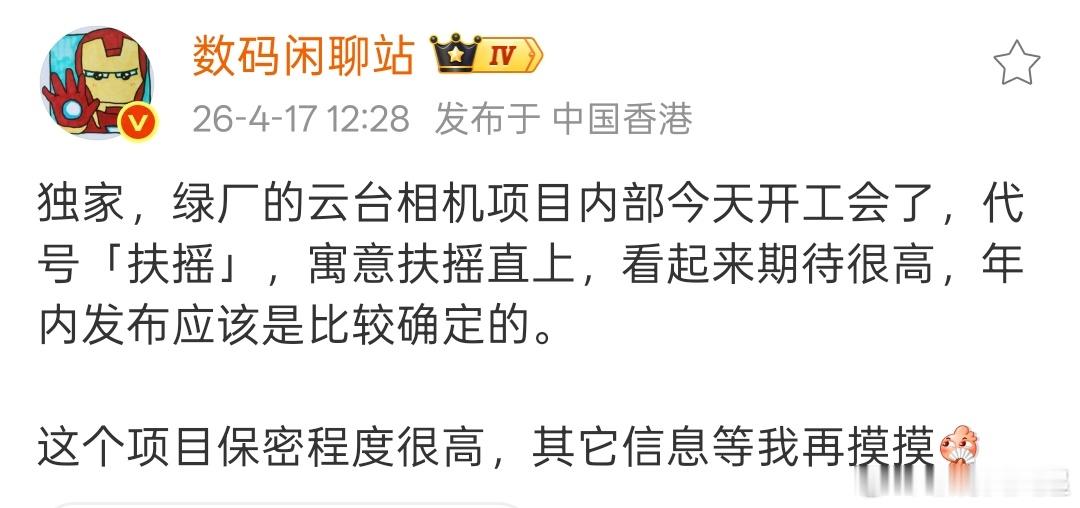 OPPO Pocket已开工,代号扶摇,对标大疆Pocket,以绿厂的影像积累和产业链整合能力,这次下场绝对值得期待,毕竟是机圈大厂,尤其是和手机的互联生态绝对体验会好很多