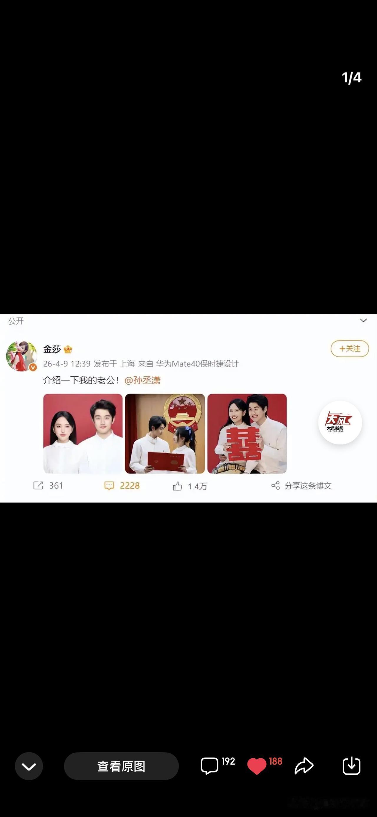 然后,金莎直接贴出了3张力证结婚图片。