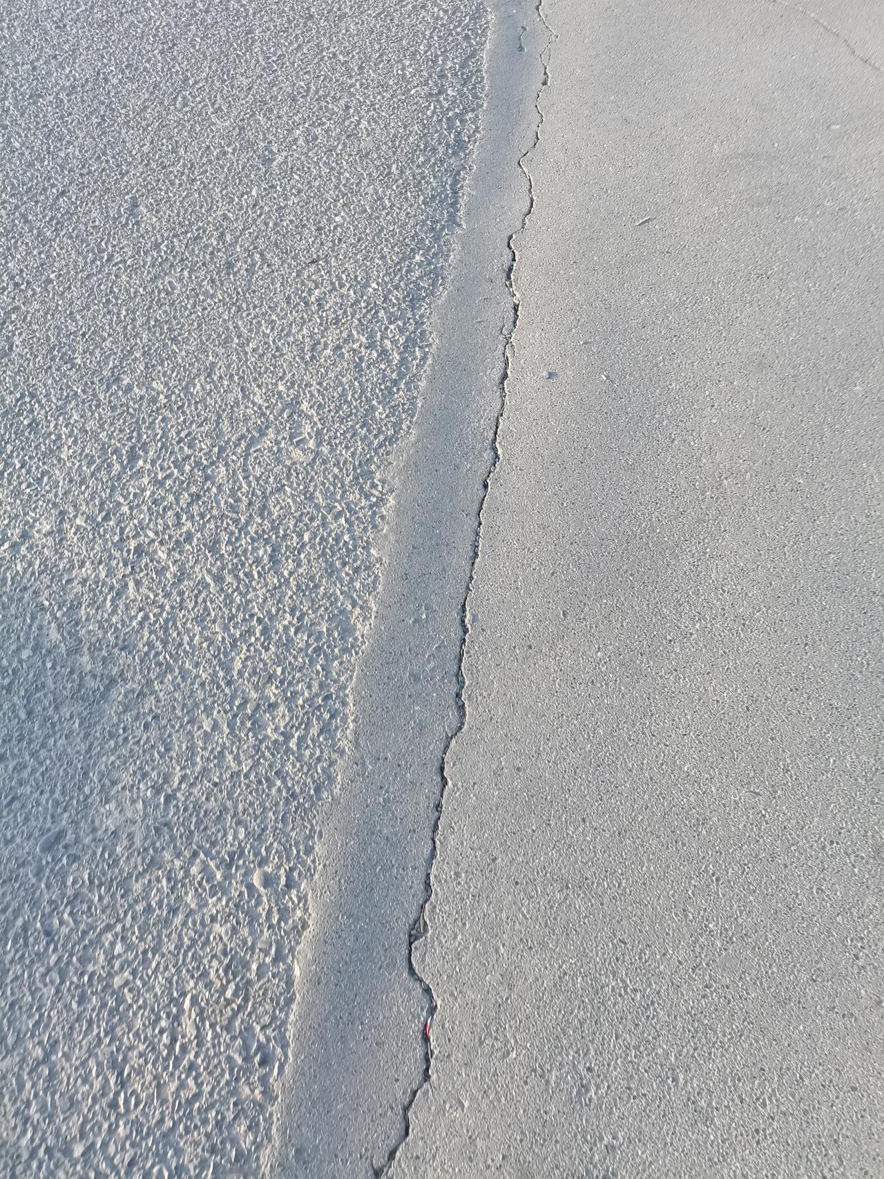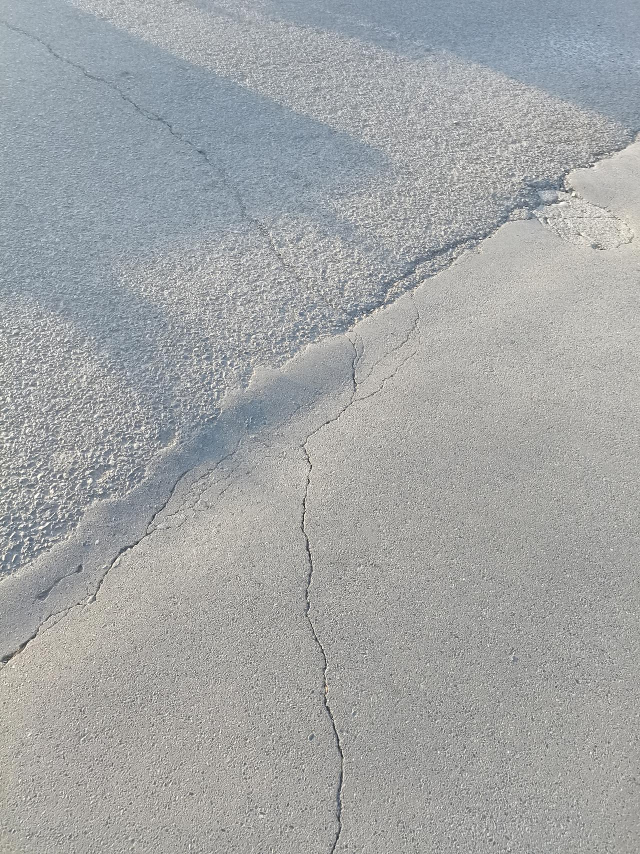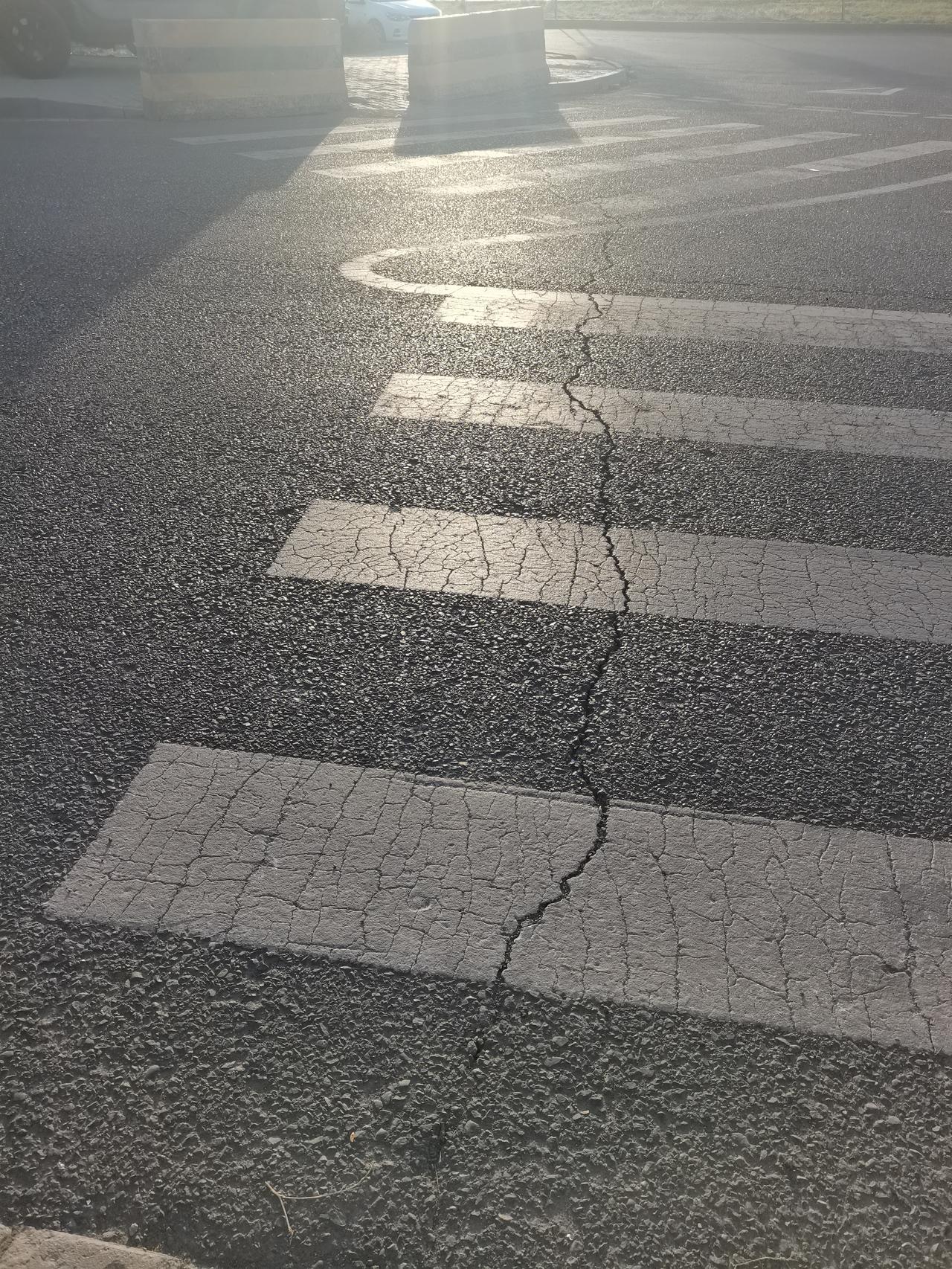 在最低洼的地方,城北主干道和安苑路均出现了一道道裂痕。城北主干道的裂痕主要呈东西向,安苑路的裂痕主要呈南北向。这些裂缝虽不算大,但却是近两年来才出现的。由于下方就是地铁,我曾一度以为发生了沉降。然而,沉降在地铁隧道中是能够察觉的,尽管此处并非地铁站,但地铁司机理应会发现。所以,应该不是沉降问题。