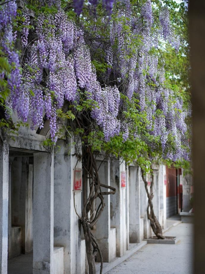 【西安纺织公园紫藤花瀑来袭】西安市纺织公园紫藤花开成了一片花海,白紫交织的蝶形花朵垂满枝头,与嫩绿新叶相映成趣,紫色的花穗如同瀑布一般垂落下来,微风轻拂间漾开层层温柔花浪,清甜花香萦绕满园,成为独特温柔的春日紫色印记。