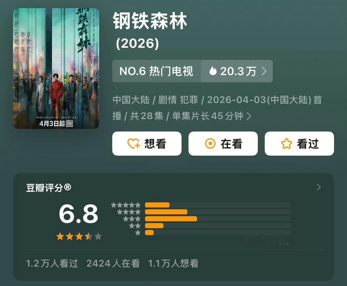 钢铁森林豆瓣开分6.8 月鳞绮纪豆瓣开分5.3白日提灯豆瓣开分6.7 冰湖重生豆瓣开分3.2