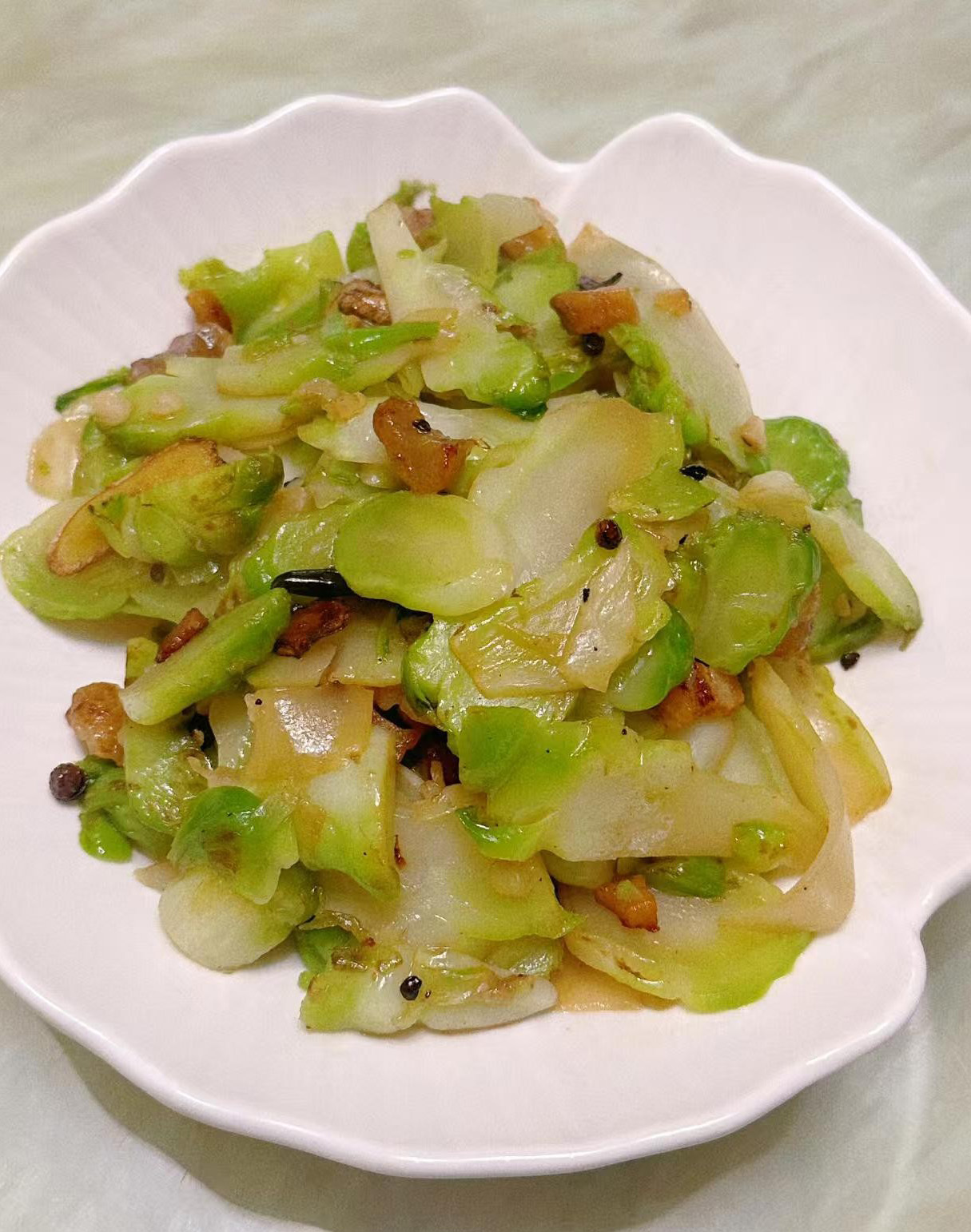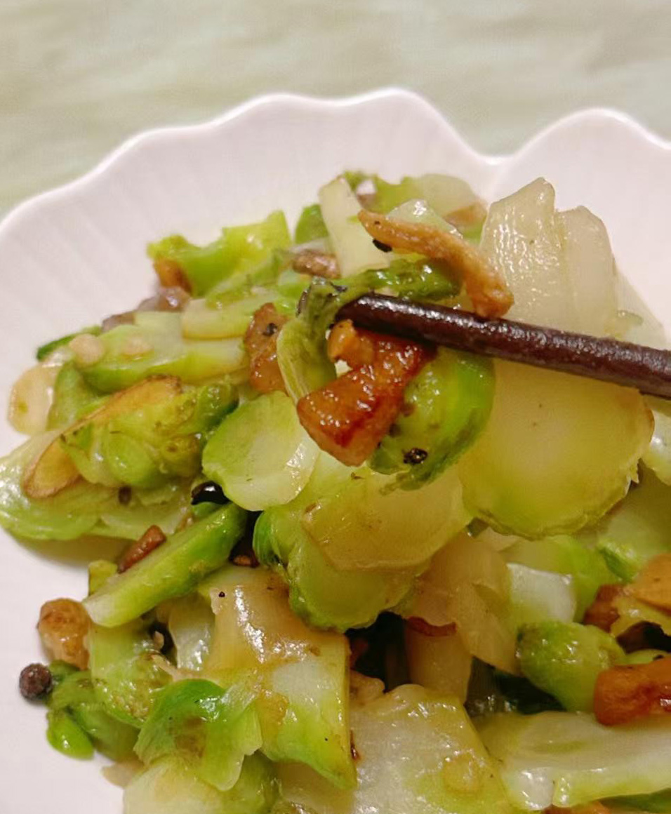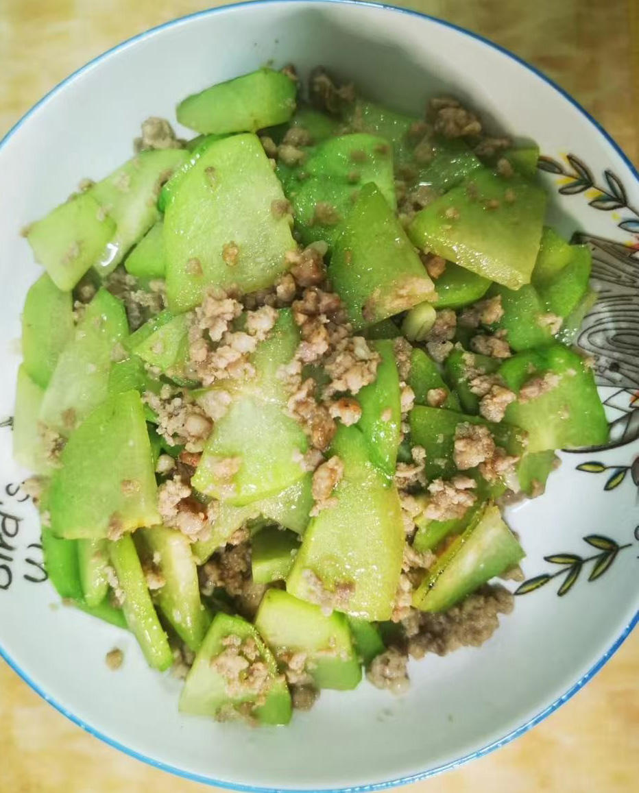 加盐、鸡精、适量水,翻炒焖 3-5 分钟出锅佛手瓜清甜多汁,搭配肉末,健脾养胃,给身体补充水分和营养,养肾又润燥!