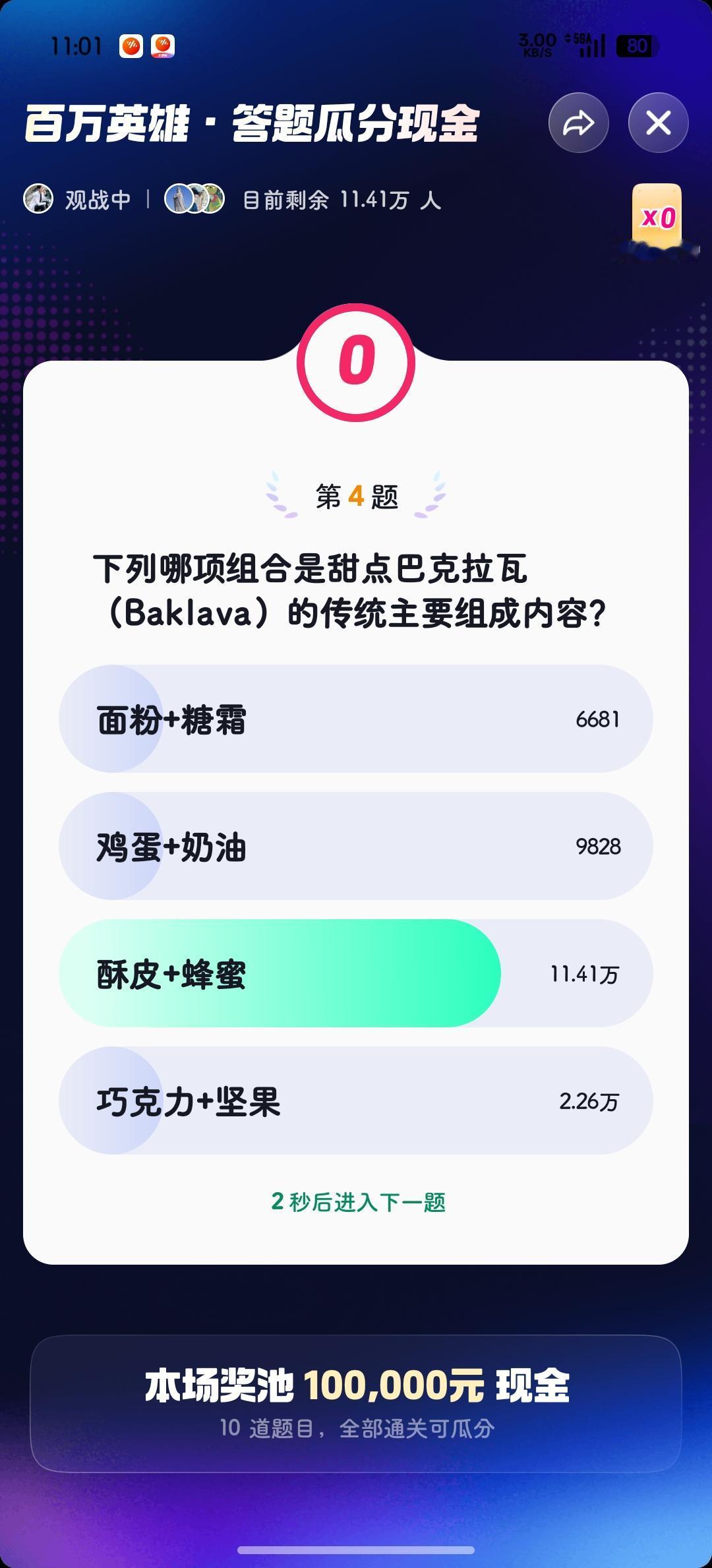 上午的抖音答题成绩还是不好,