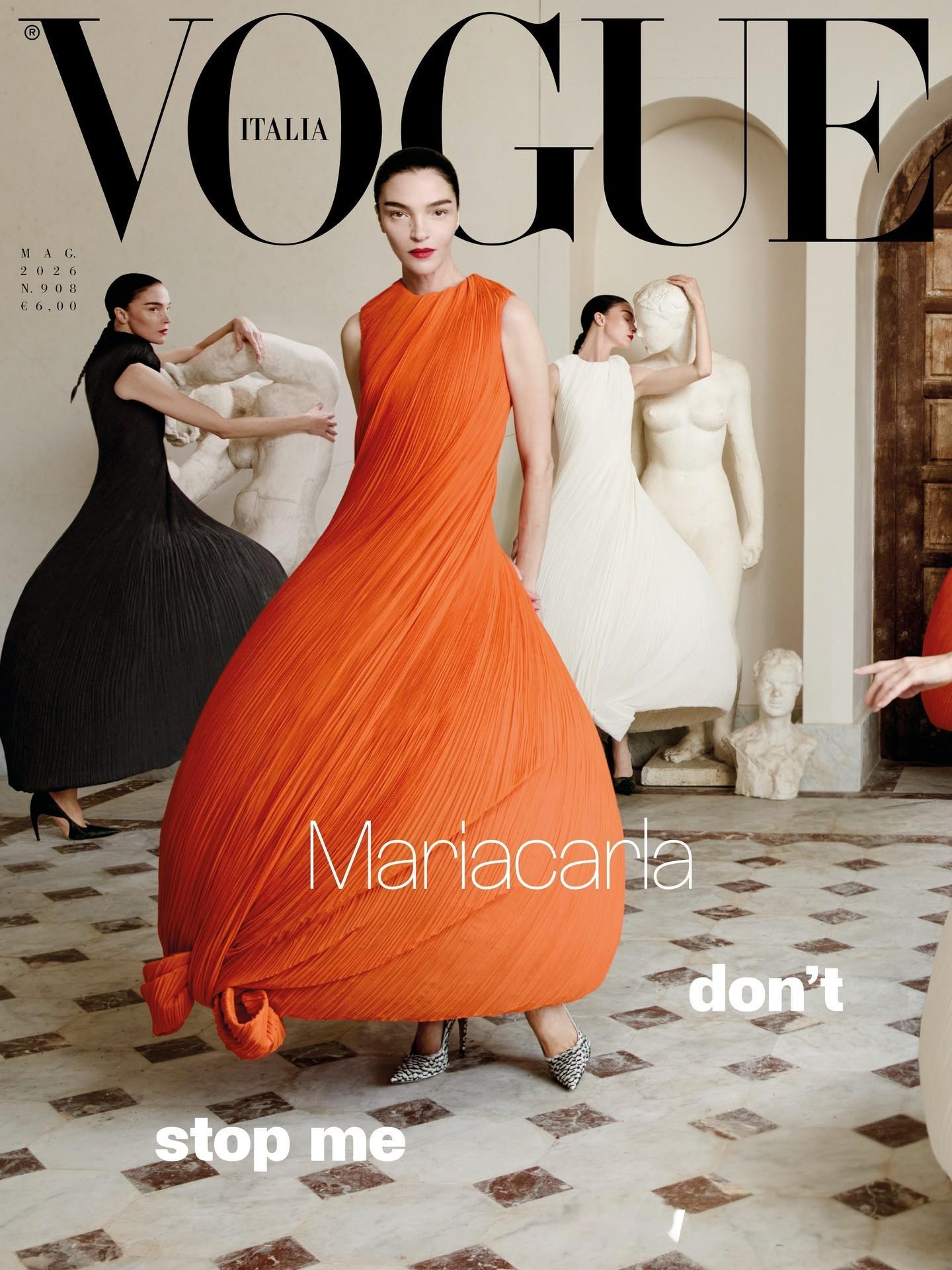 模特Mariacarla Boscono登上意大利版《VOGUE》2026年5月刊封面,演绎Dior By Jonathan首季高定中的标志性茧形廓形礼服,蛇女王的表现力 + 巧妙的摄影灵感,蛮精彩的|摄影 :Carlijn jacobs/造型 :Imrush Asha