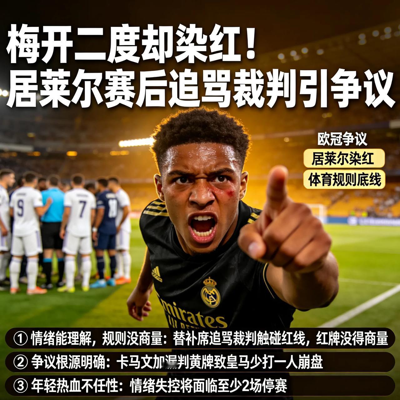 ③ 年轻热血不能任性。居莱尔渴望为球队争公道,但情绪失控要付出代价,按欧足联规则,至少面临2场停赛。