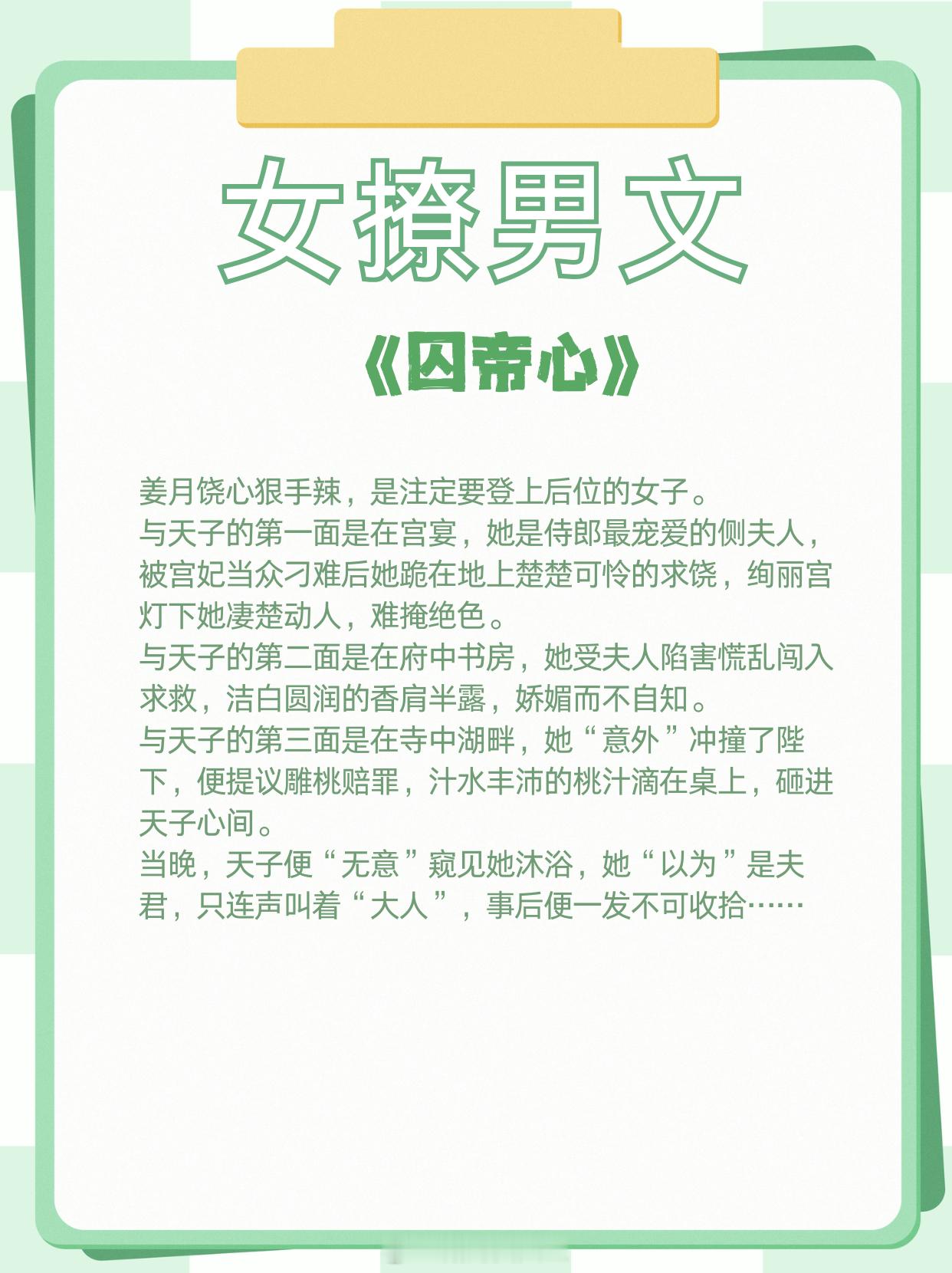 女撩男文,心机美人,钓系高手,高岭之花下神坛!1、《玉山乱》 作者:叶不鸿2、《绿茶女主的心机豪门路》 作者:商枝子3、《囚帝心》 作者:瓜蛋4、《与他藏私》 作者:市鞍马5、《痒》 作者:未可可6、《入局》 作者:呢安那些让我着迷的小说 这本小说爆好看