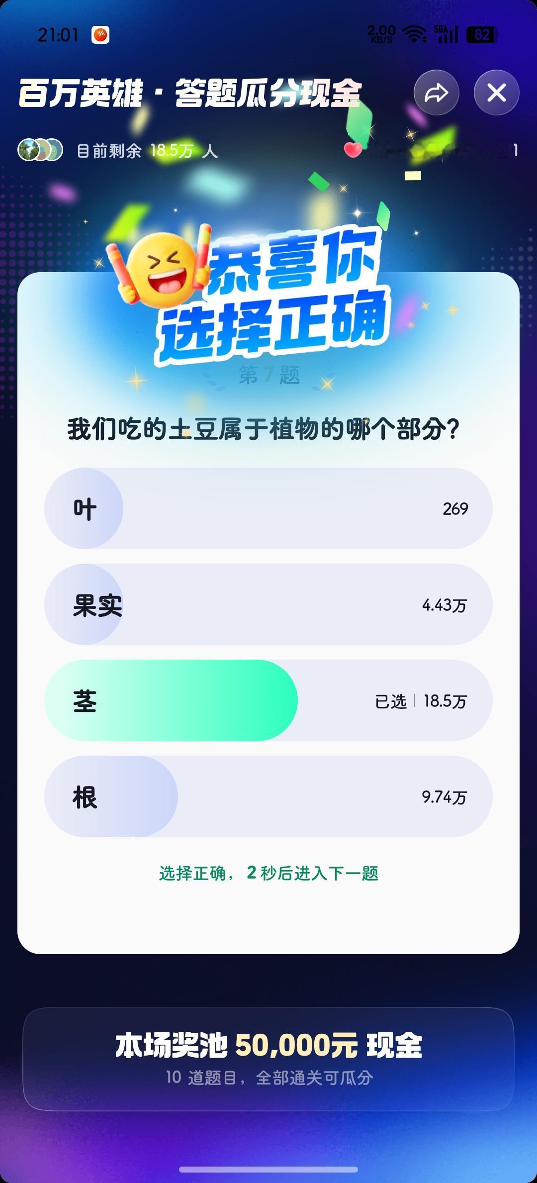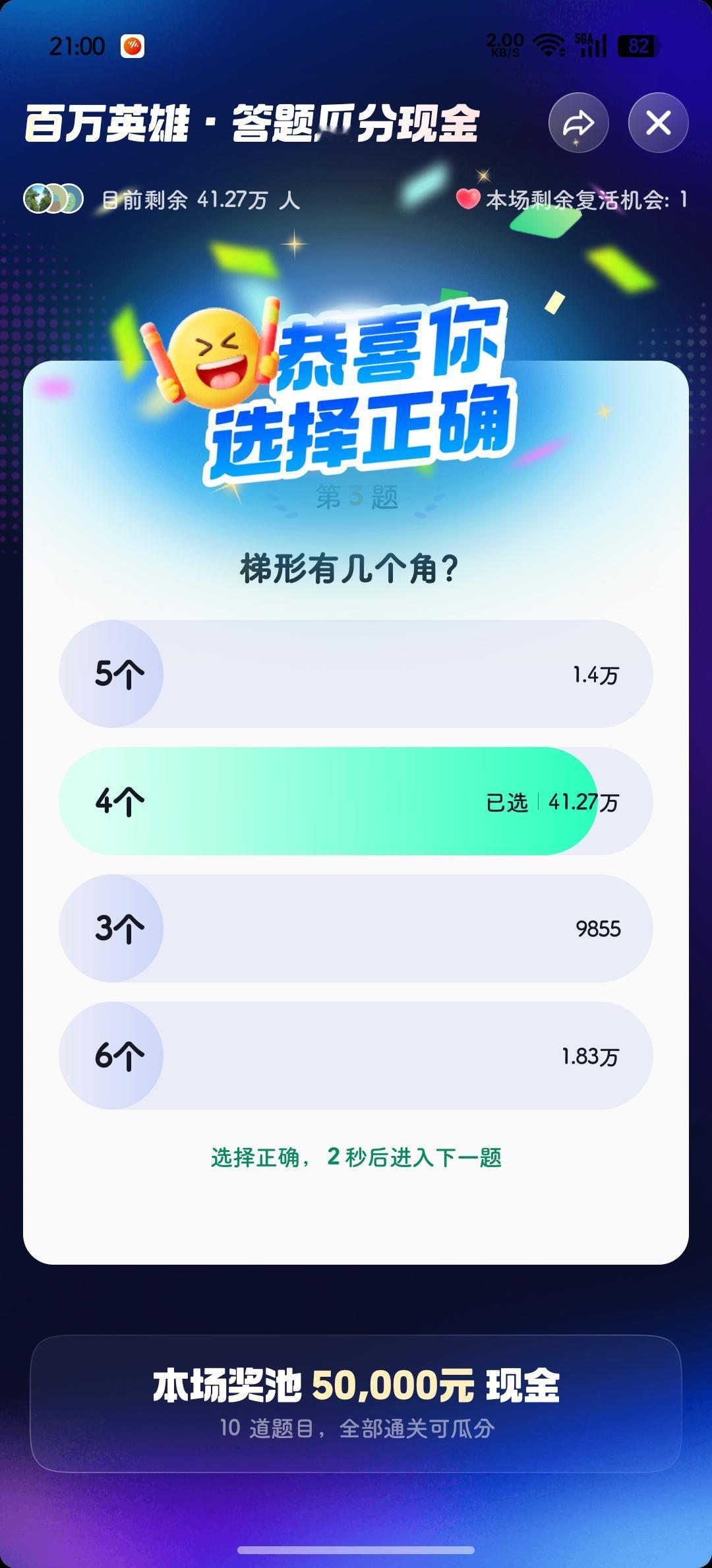 最后一道题🈶12.36万人答题, 最后还有10.27万人通关, 而我偏偏就是那