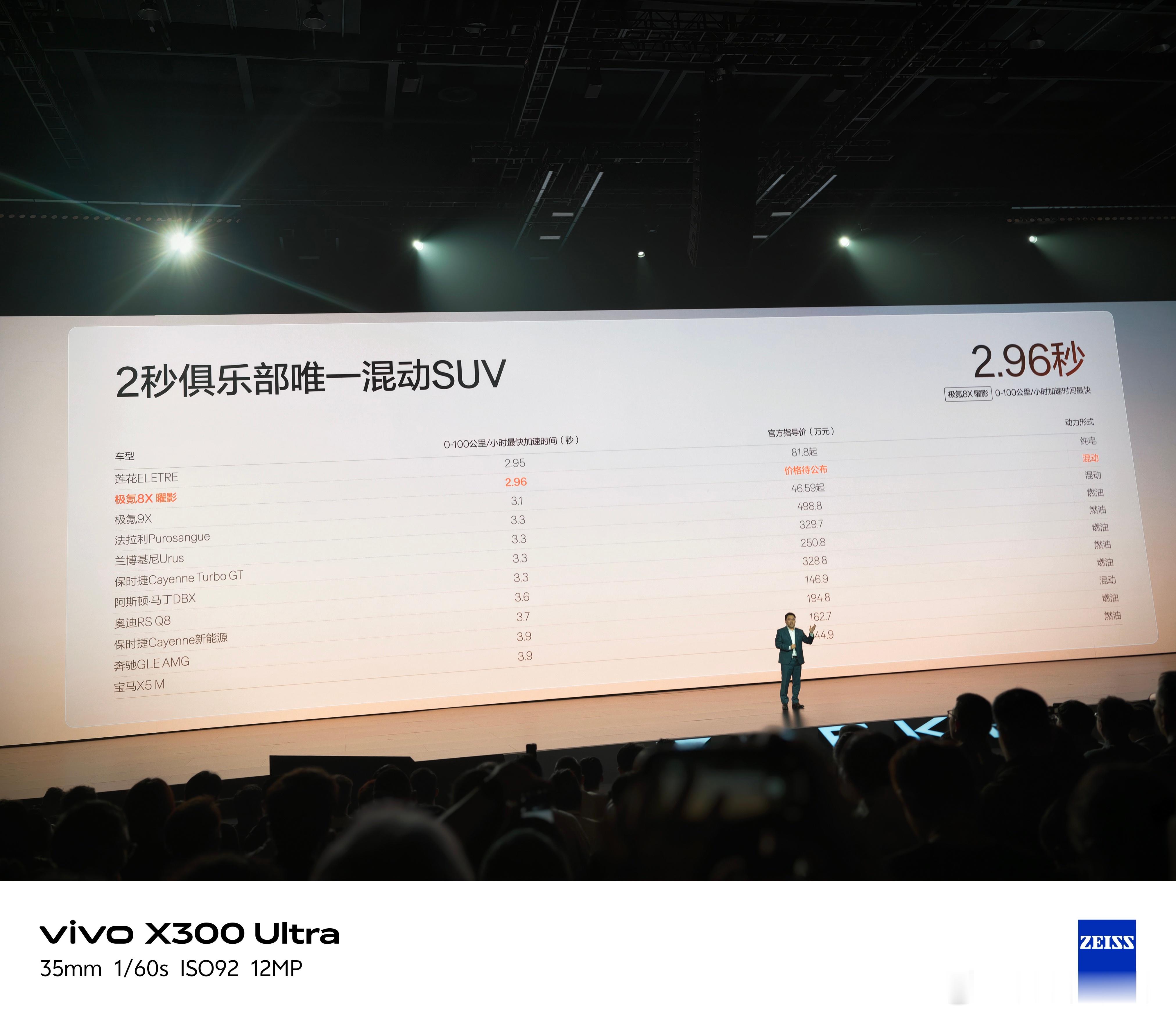 动力性能上,基于浩瀚-S超级电混架构打造,全栈900V+6C、SEP浩瀚超级电混系统。更重要的是极氪8X曜影搭载了兆瓦级三电机系统,总功率达1030kW,零百加速仅需2.96秒,是全球加速最快的混动SUV。