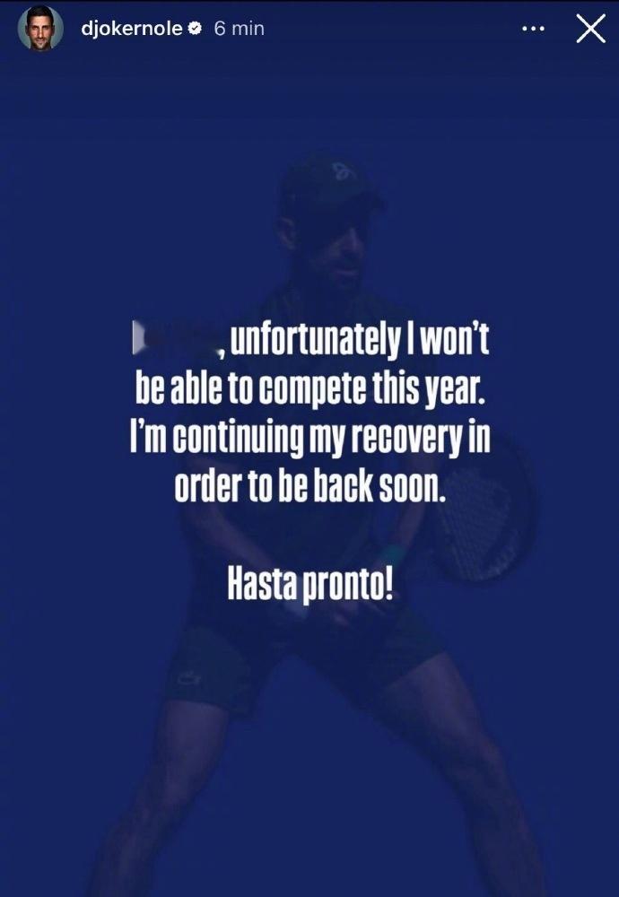 德约科维奇在个人社媒表示,自己将退出今年马德里大师赛,将继续康复,以尽快重返赛场。