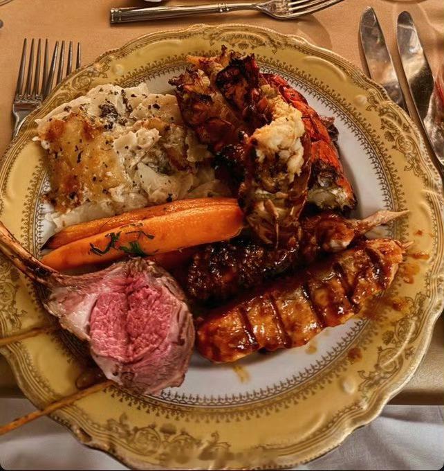 一张是正在前方打仗的林肯号航母水兵的食物。另外一张则是在后方的海湖庄园饭菜。正所