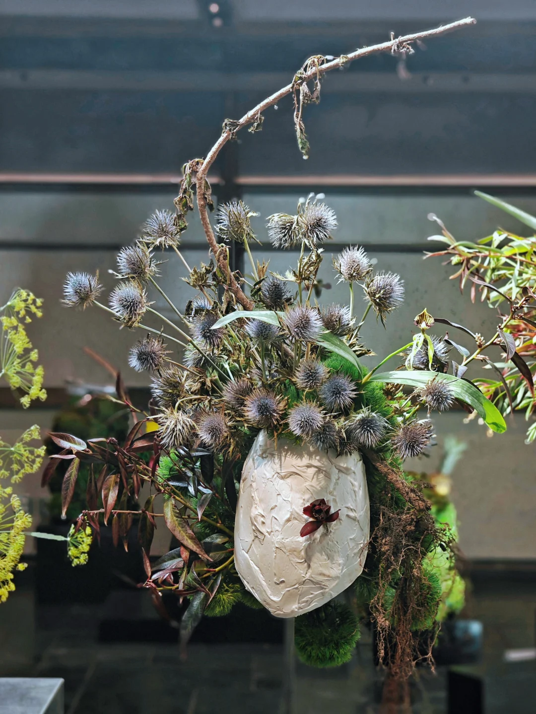 💐这次展览的创作方musono studio,以花艺为核心,将植物视为空间语言而非装饰。展览中每一件装置,都是对“重新组织已有之物,让存在以另一种方式被看见”的实践,用自然之力,在城市中构建出一片可呼吸的精神场域。