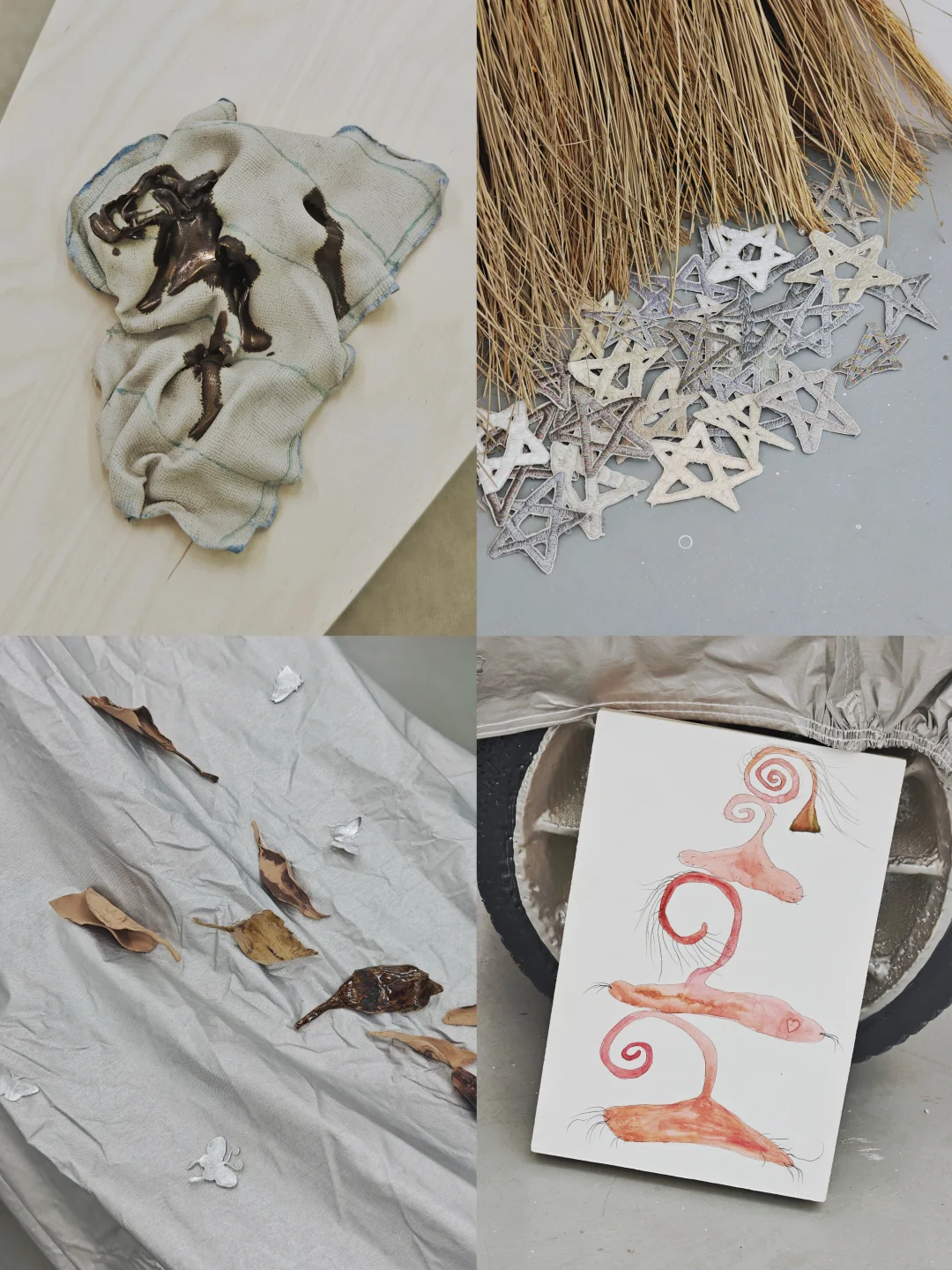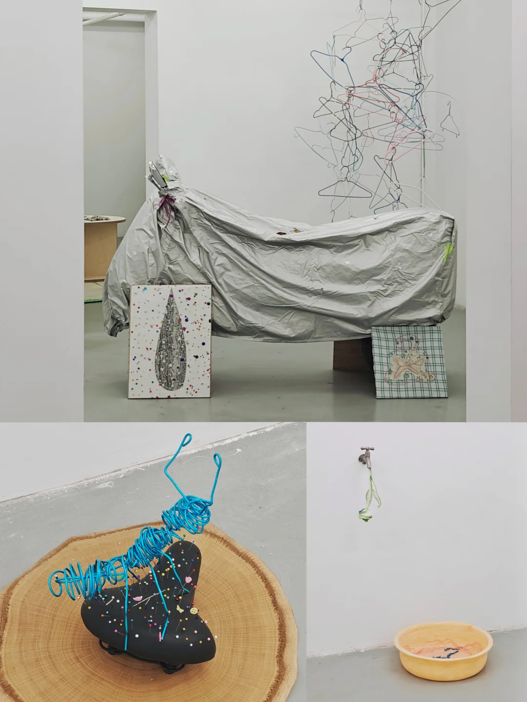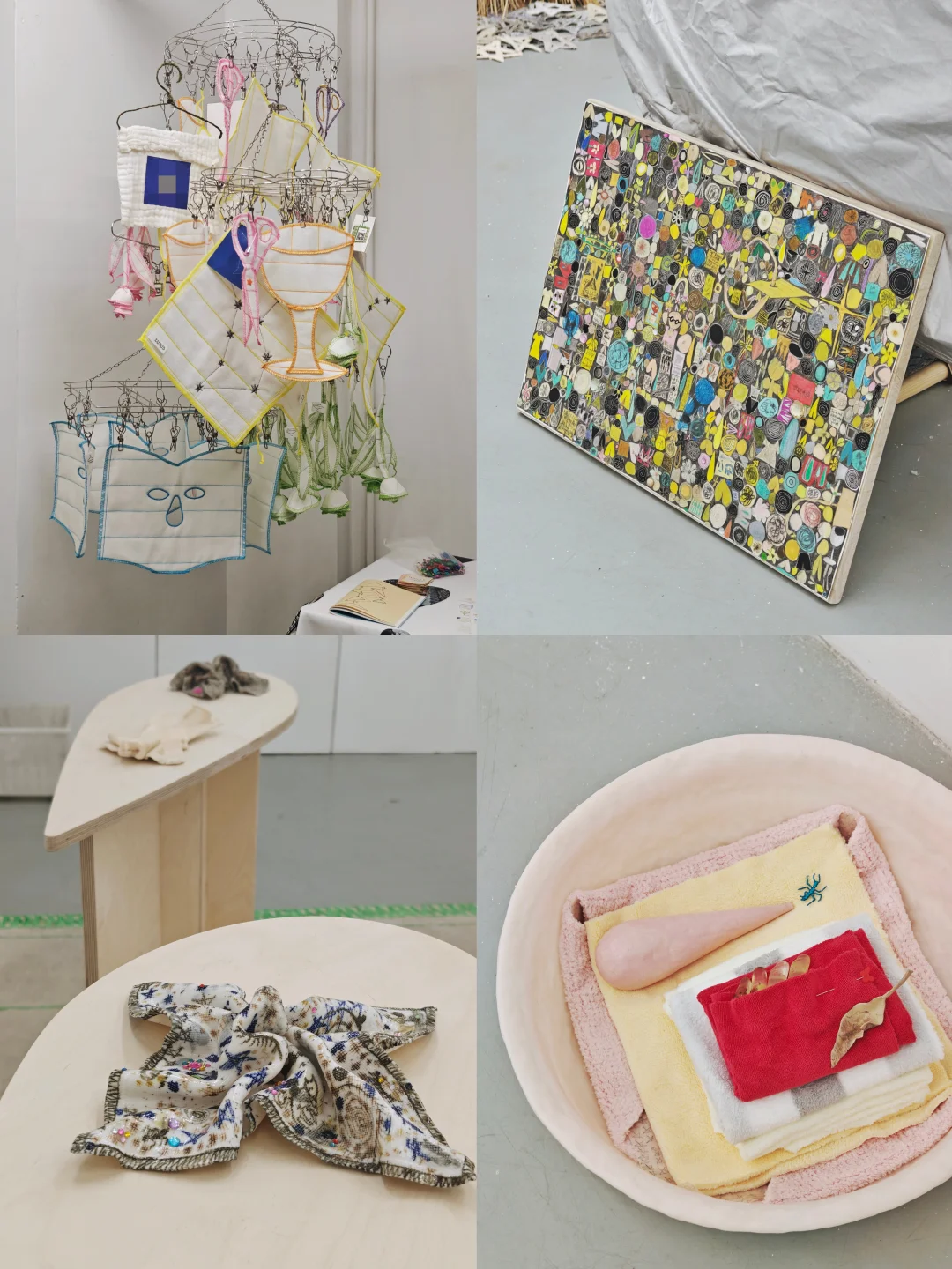 塑料绳、裁剪旧毛巾、面塑土、废弃陶瓷