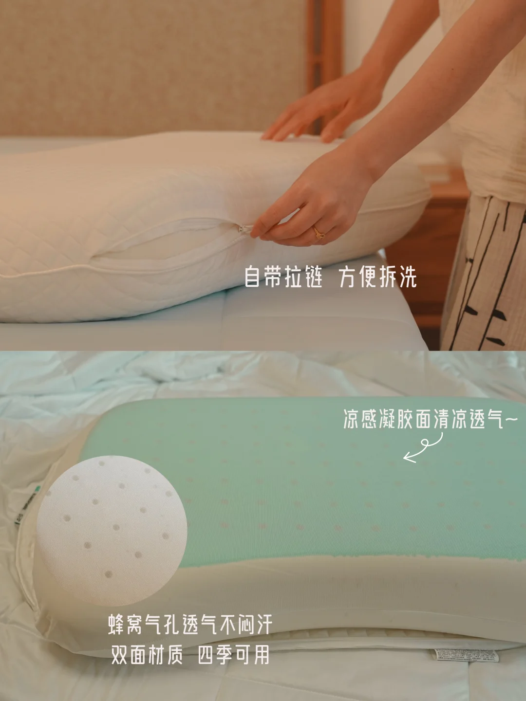 克鲁布斯珀勒护颈枕,完美贴合颈椎,仰睡、侧睡都舒服,容易落枕的姐妹一定要试这款,软而不塌,支撑力刚刚好!它一面是降温凝胶材质,另一面是减震海绵,夏天躺上去清凉透气,秋冬软糯又贴合,两种触感随心换,再也不怕换季换枕头麻烦了。