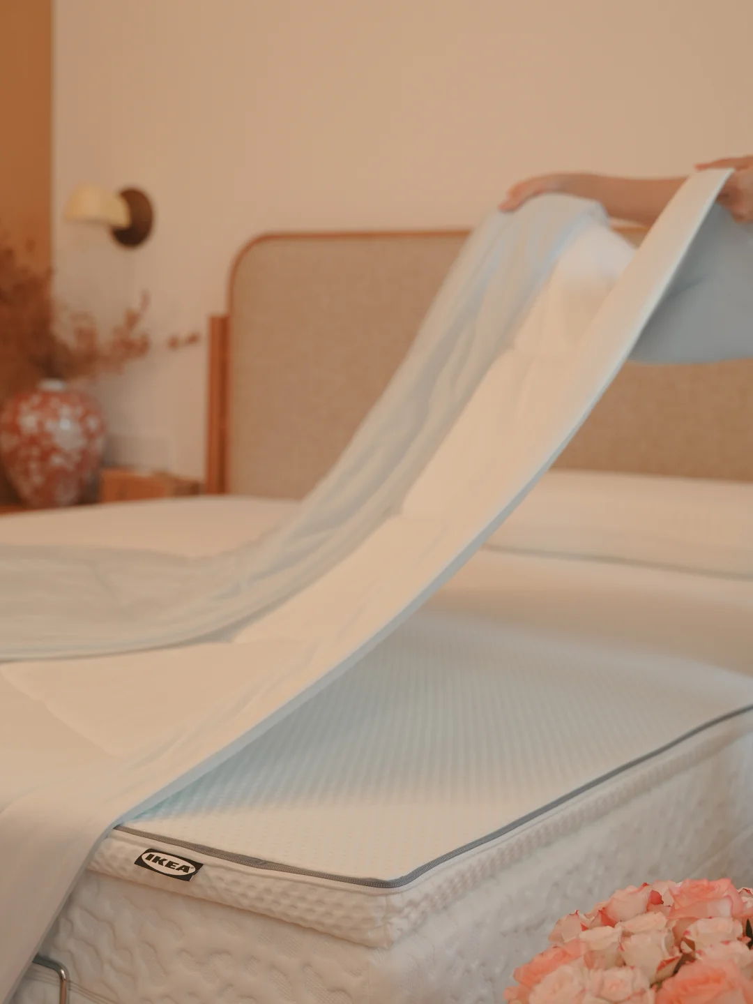 这几天升温,跑了趟宜家,精挑细选,扛回来睡眠三件套,迫不及待把卧室布置了一番。