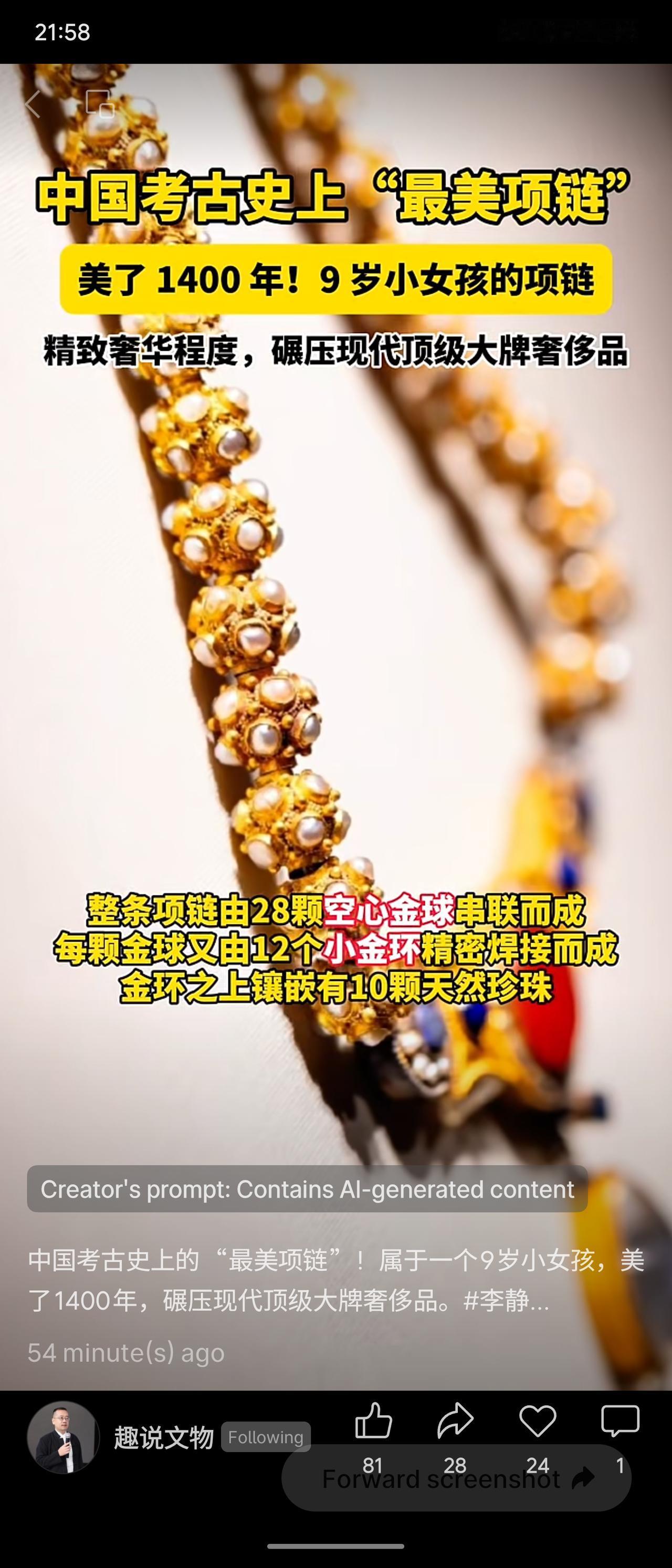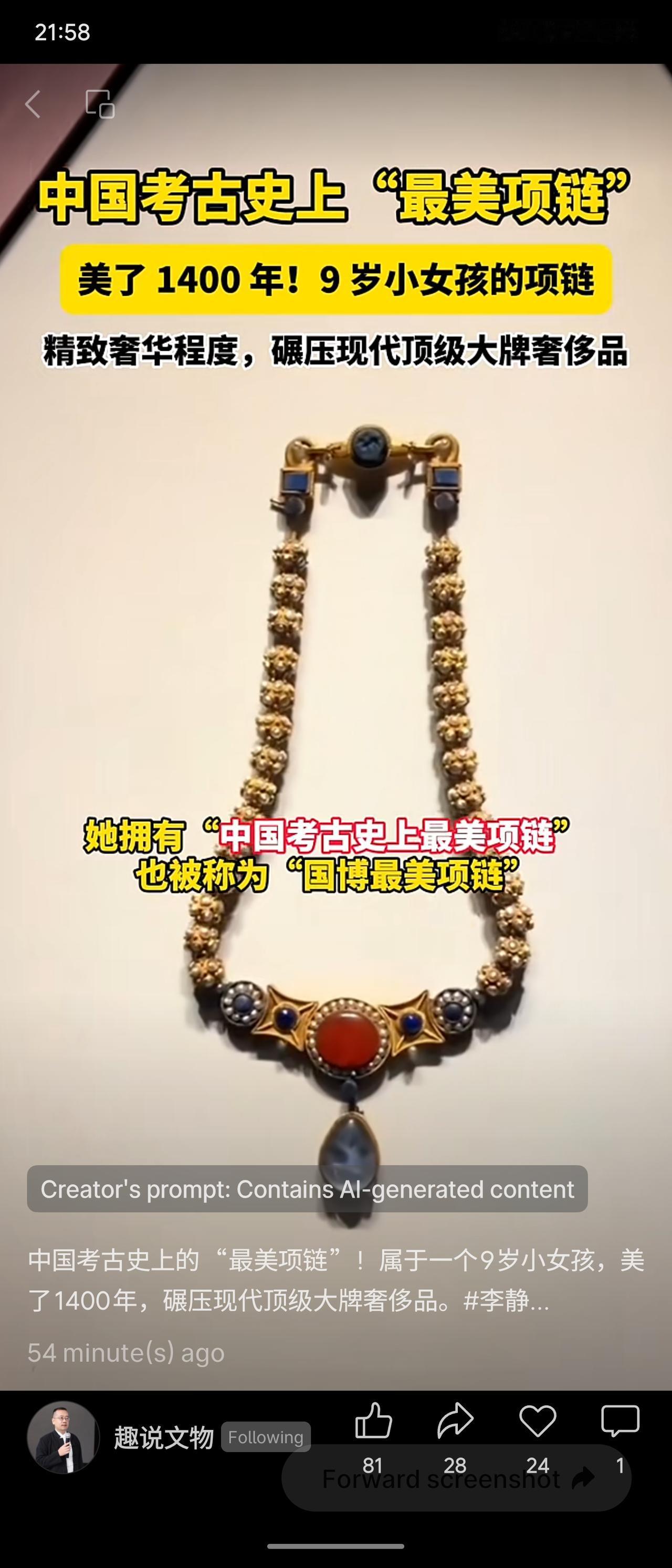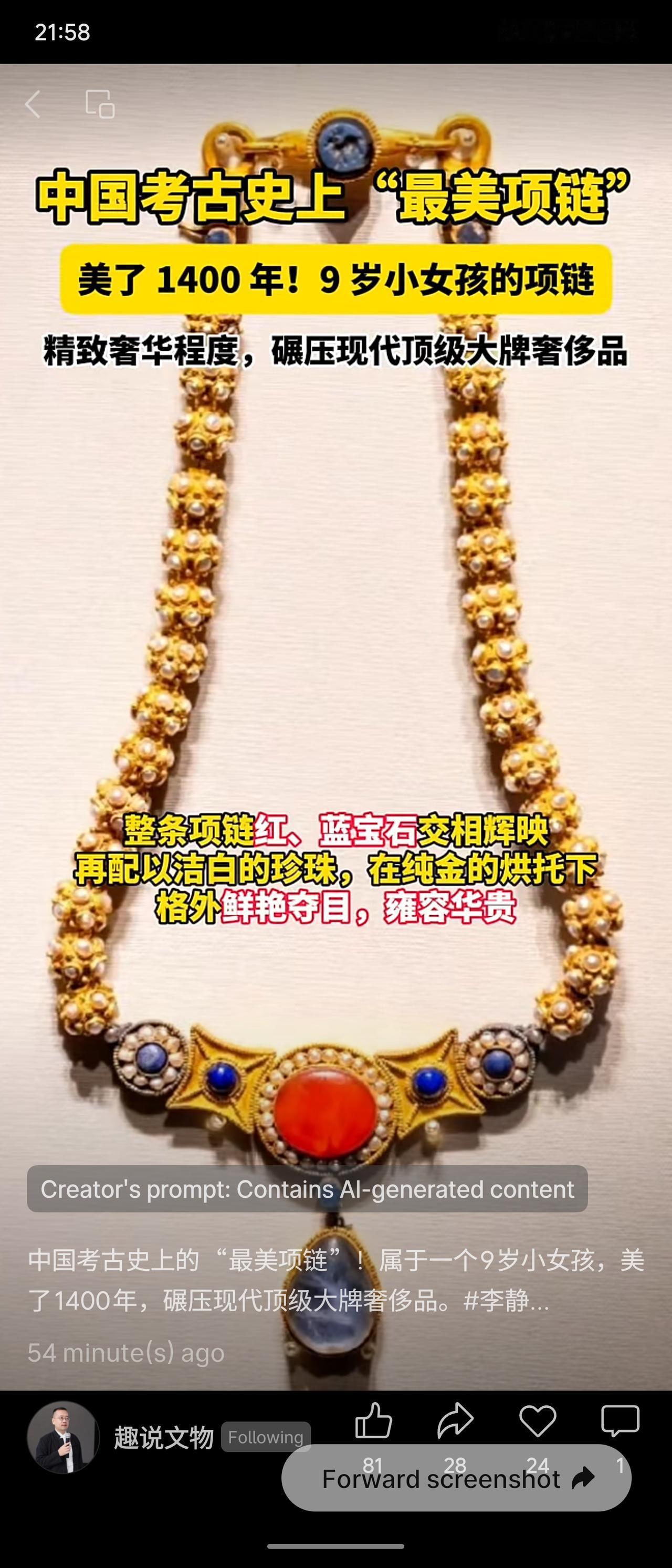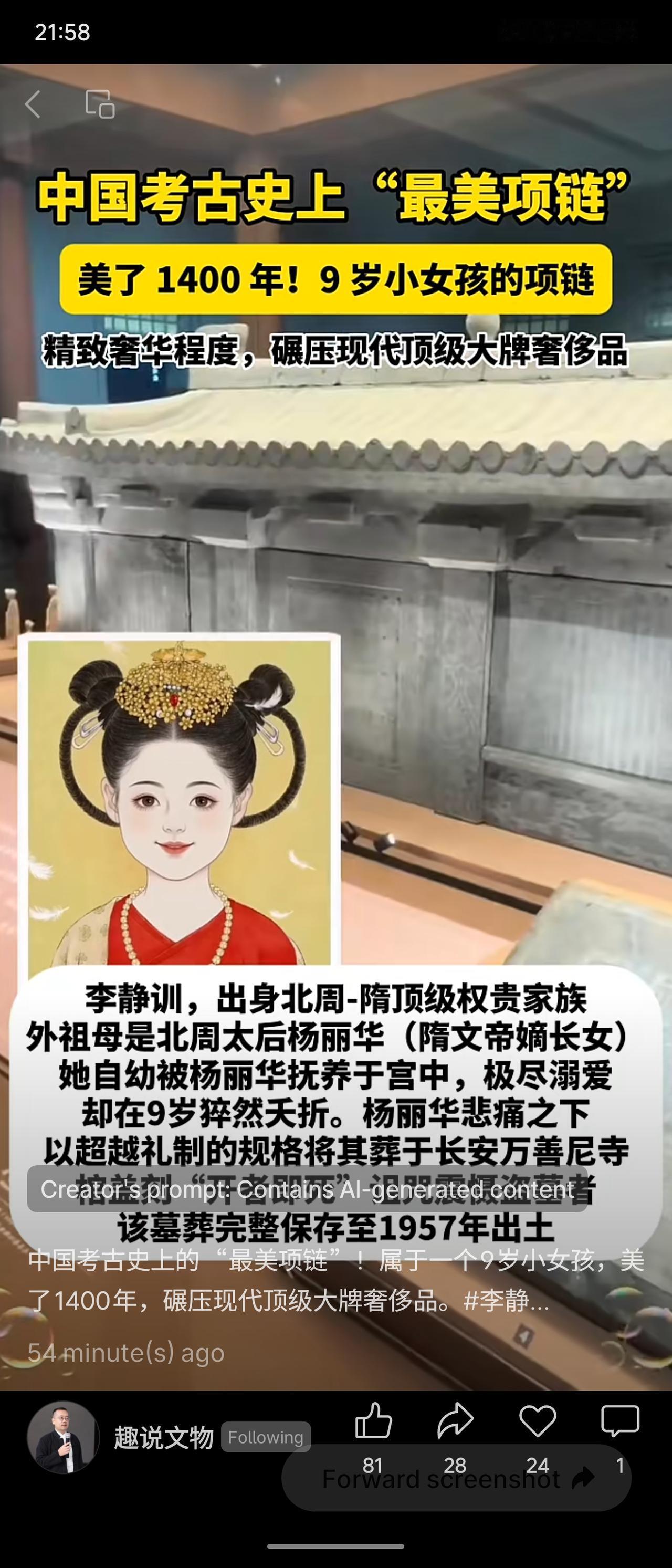 中国考古史上“最美项链”属于一个9岁女孩李静训(李小孩),美了1400年,奢华程度超越现代顶级奢侈品。项链由28颗空心金球串联,每颗金球由12个小金环焊接,镶嵌珍珠与红蓝宝石,下端有鸡血石和青金石坠饰。李静训出身北周至隋朝顶级权贵家族,外祖母为北周太后杨丽华(隋文帝嫡长女),她自幼被养于宫中,9岁夭折,杨丽华以超越礼制的规格将她葬于长安万善尼寺。1957年墓葬完整出土。