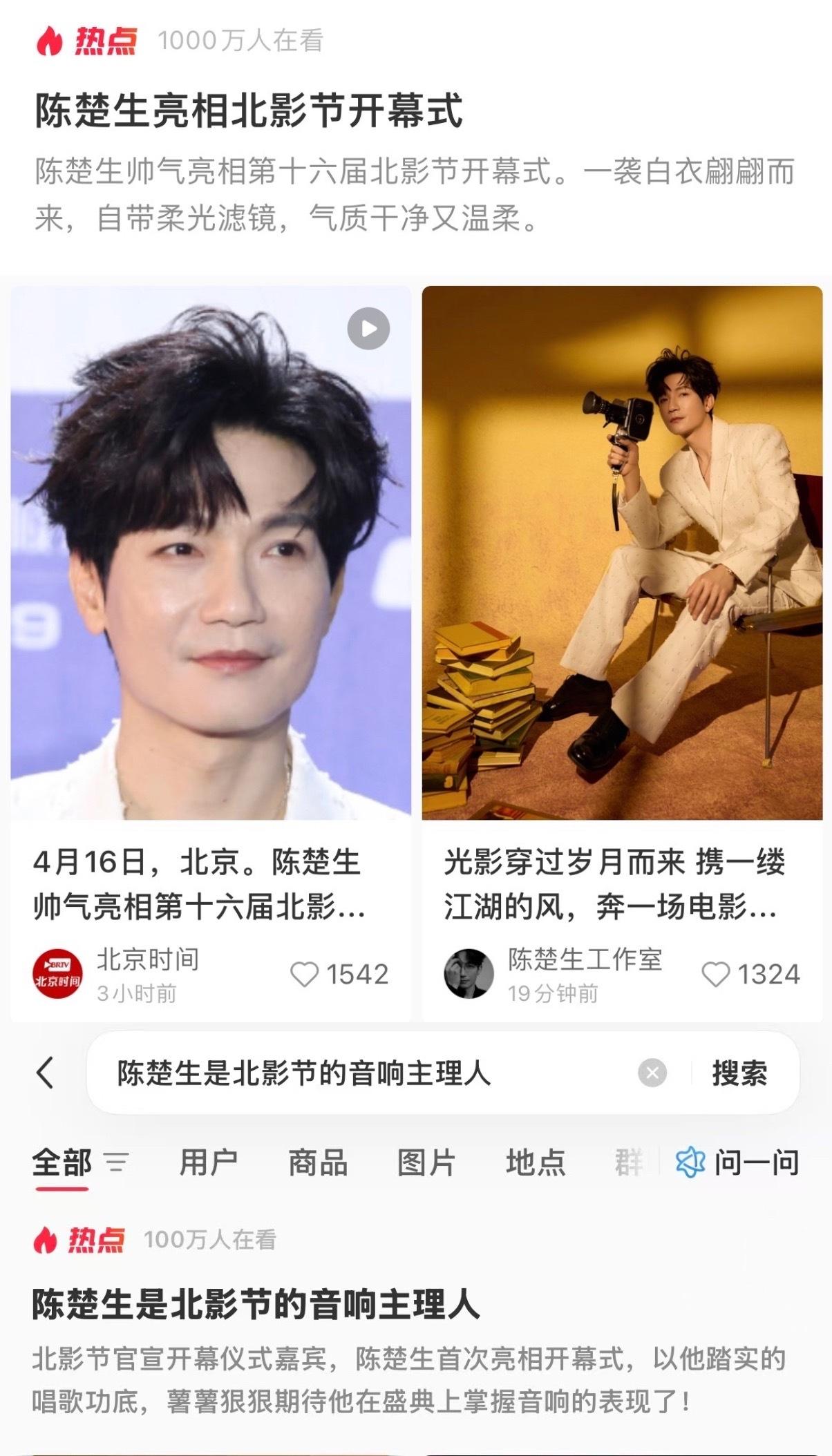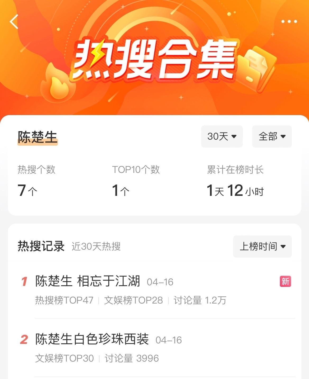 就连“陈楚生白色珍珠西装”和“相忘于江湖”都上了文娱热搜!