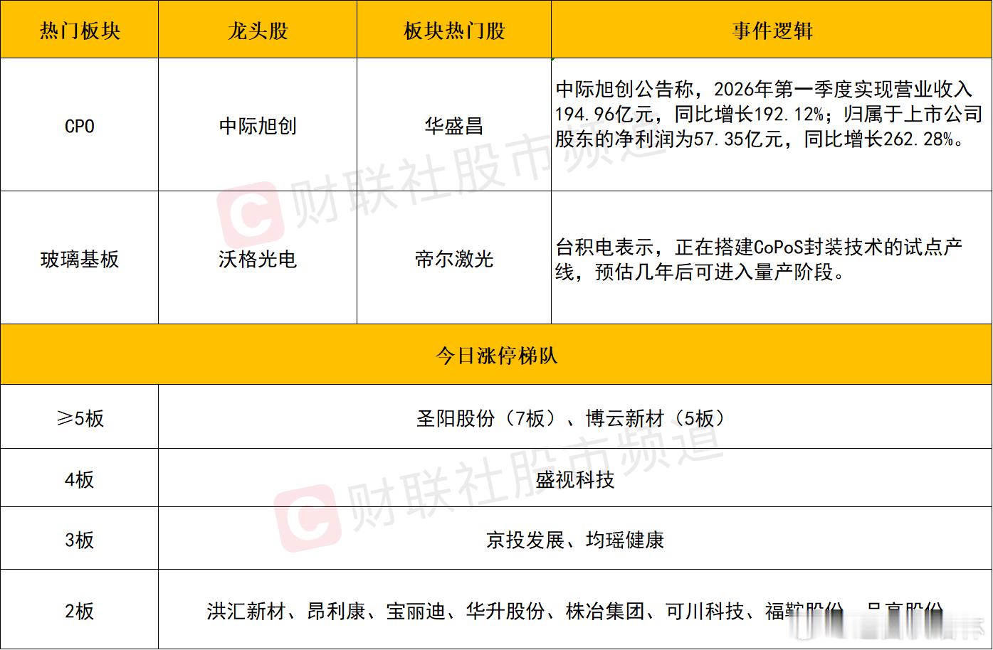 个股层面,算力硬件为代表的核心权重延续强势。中际旭创在一季报业绩高增的带动下续创新高,而源杰科技涨超10%股价超越茅台成A股新“股王”。此外新易盛、胜宏科技、东山精密、天孚通信等权重同样涨幅明显。目前市场主流风格依旧偏向于核心标的的趋势抱团,在中期趋势没有遭到破坏的情况下,后续仍可在短线震荡中寻找低吸机会。
