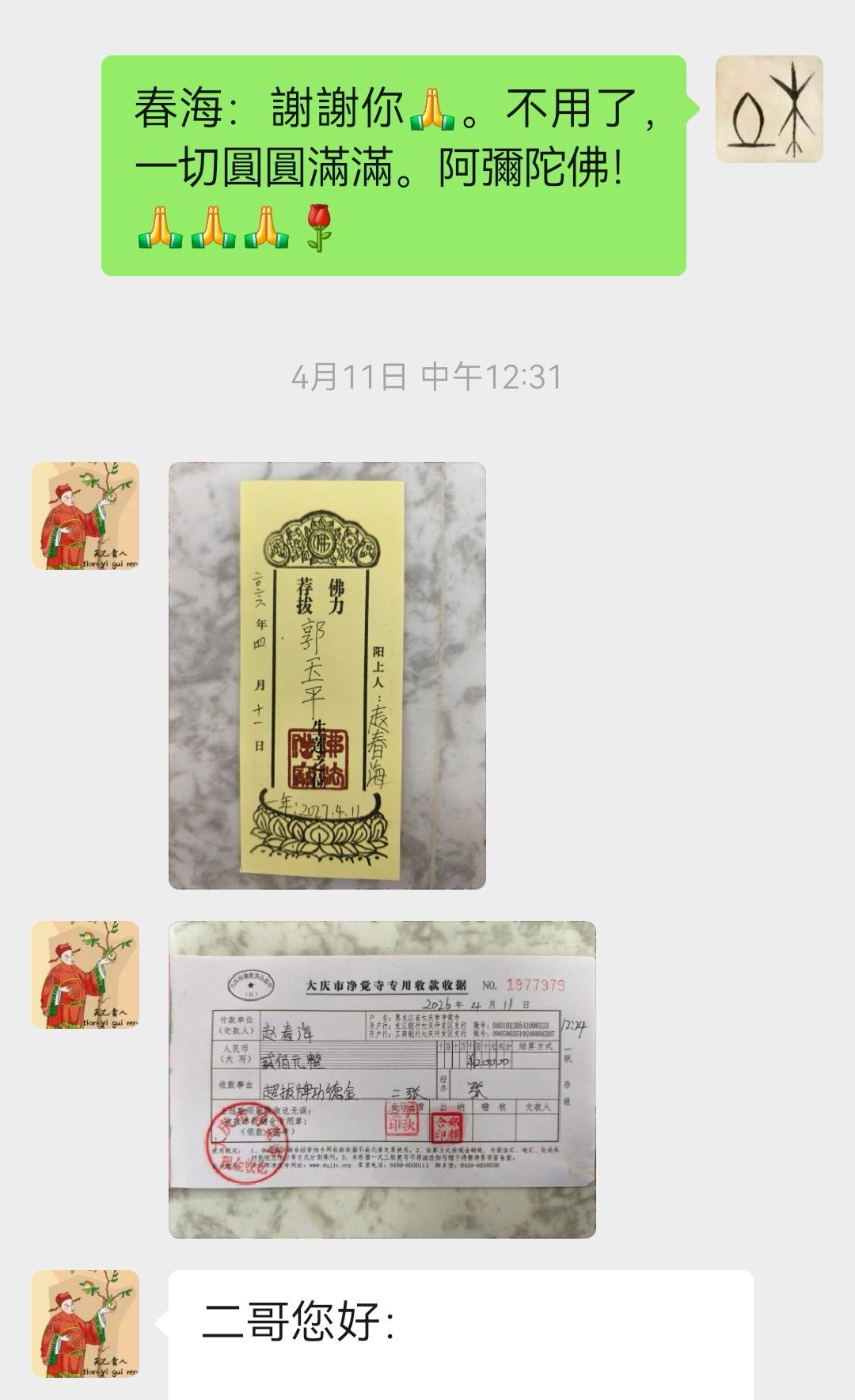 二.春海小弟。小弟親自去《凈覺寺》為家母掛一年的超拔牌。真誠感恩小弟的這份情意。[合十][玫瑰]