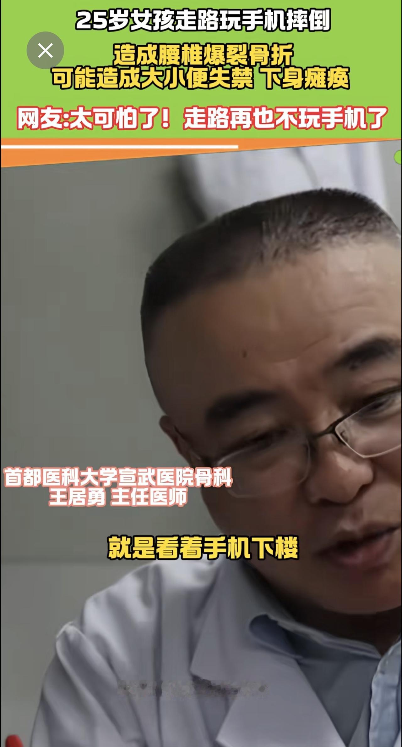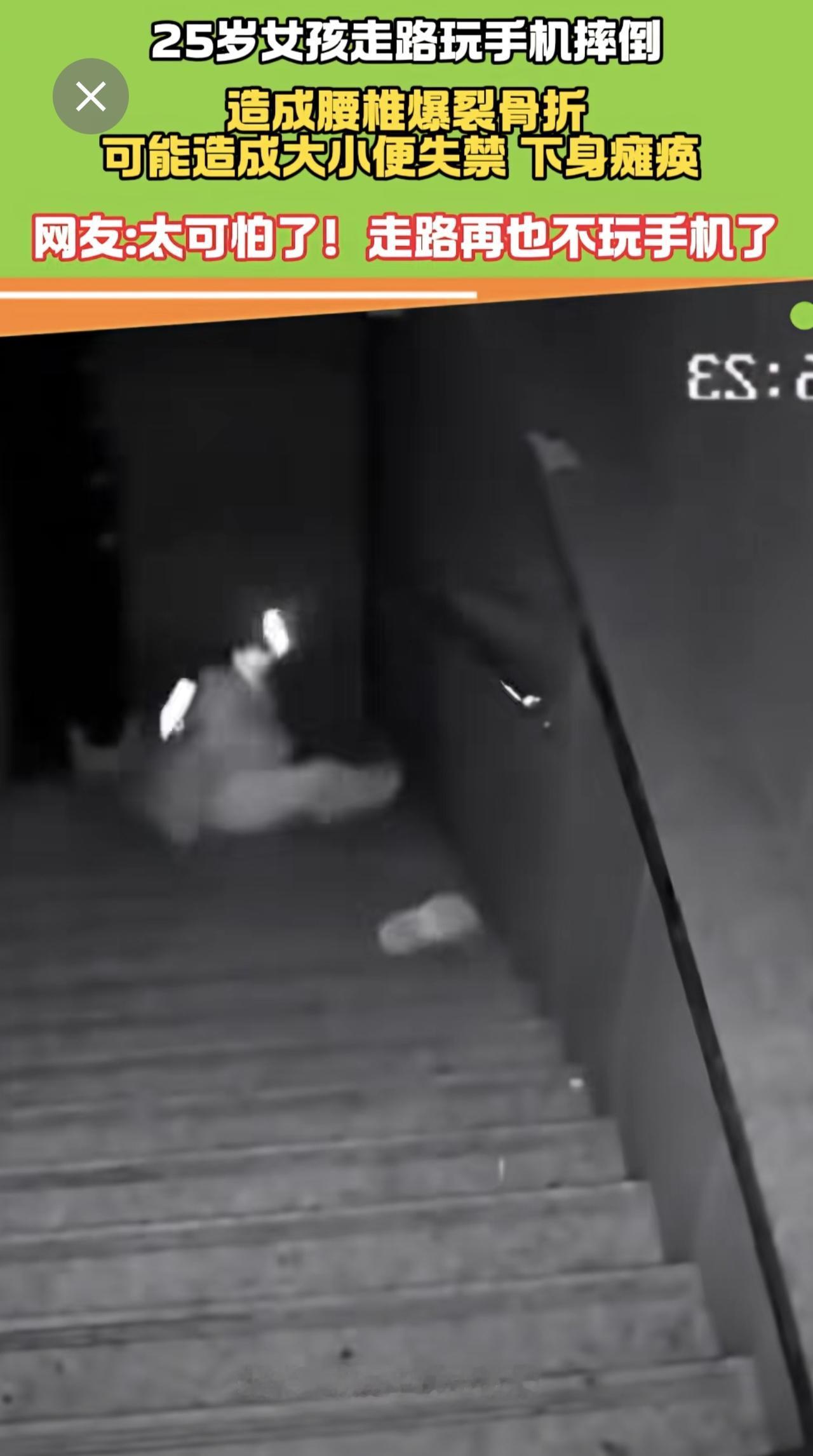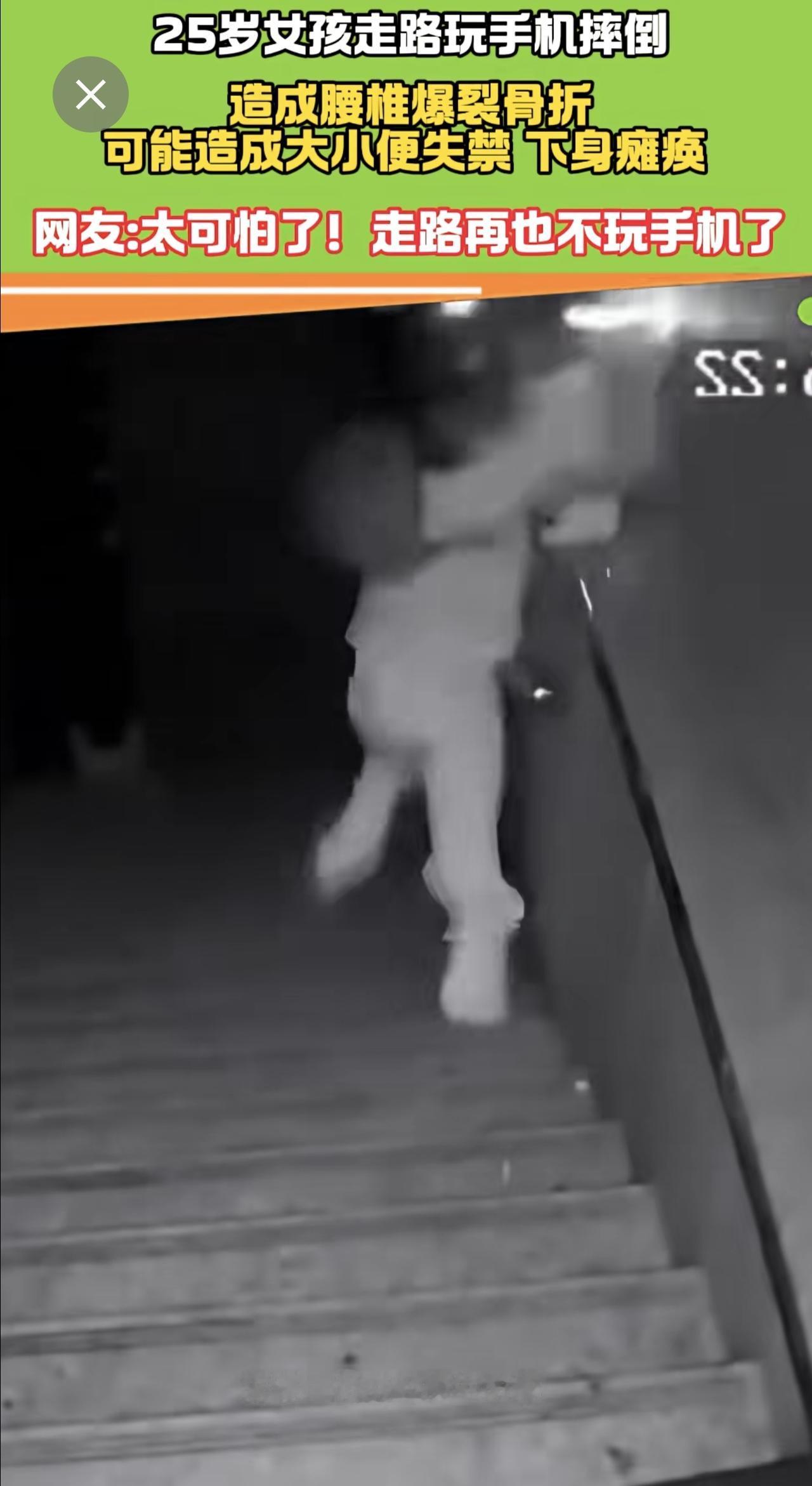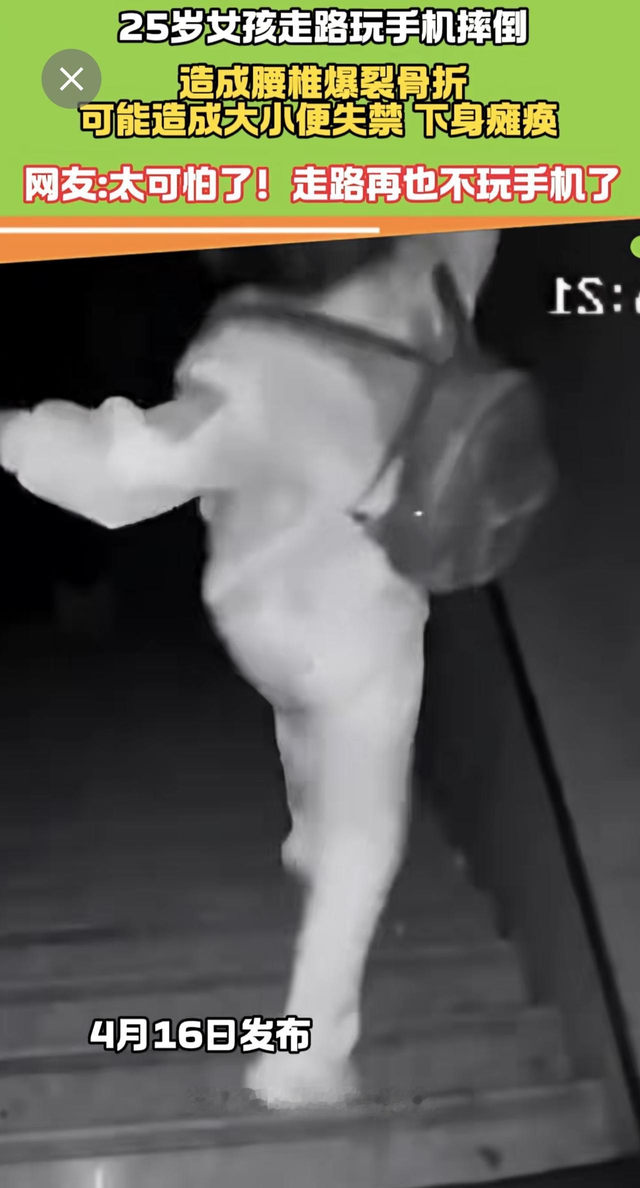 25岁女走路孩玩手机摔倒 腰椎爆裂骨折 医生:有瘫痪风险! 手机 瘫痪