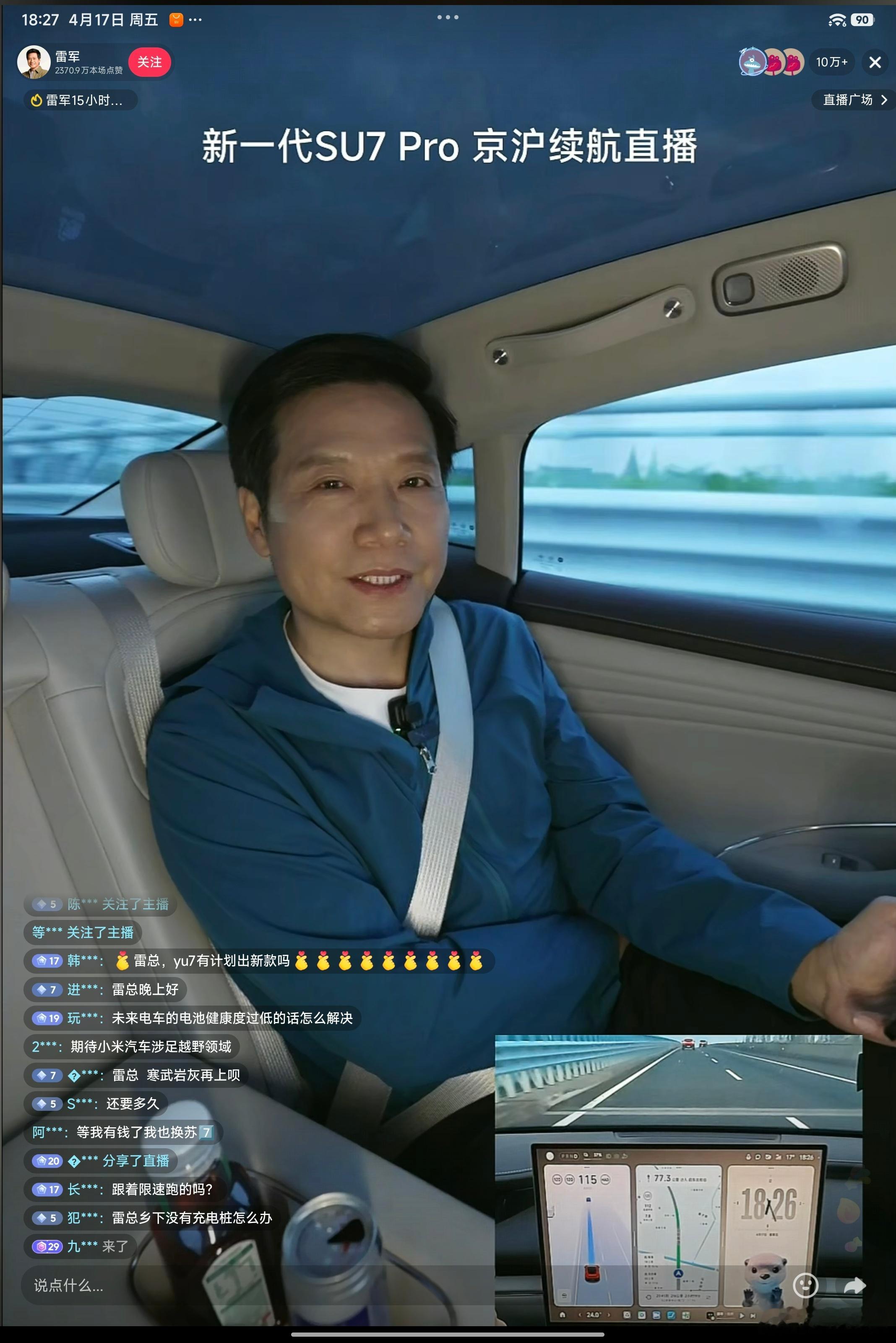 雷军达成京沪高速只充一次电 为了小黑子们的一句话,雷军也是放下总裁的架子,和大家豁出去了,直播来了一场15个小时1300km中途只充一次电的测试。