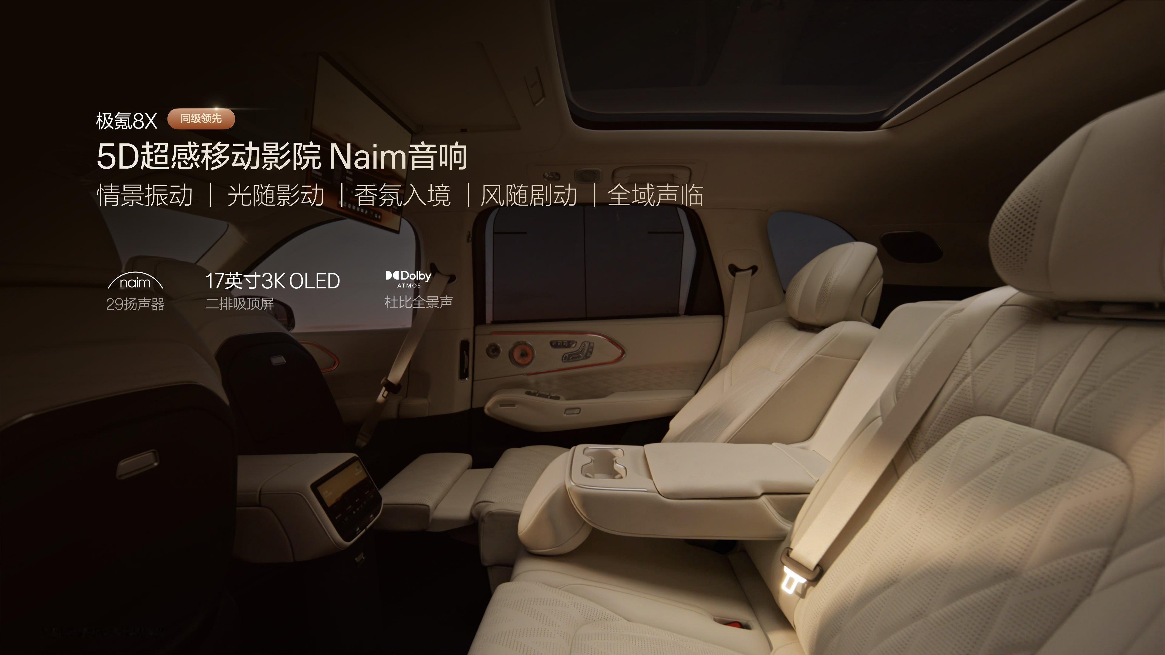 全黑化高性能的“曜影”版,三电机,零百2.96秒,还带碳纤维套件和主动尾翼,零售价50.08万元,权益后限时售价47.38万元。极氪8X上市限时售价32.98万元起