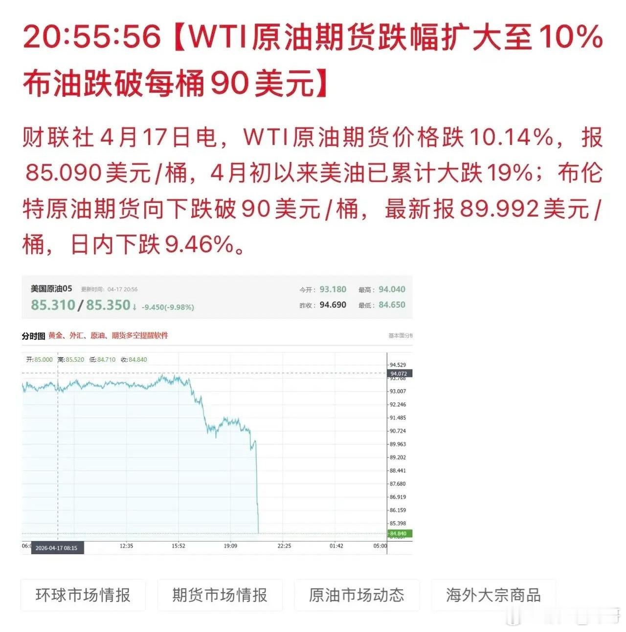 但事实是美伊局势没有进一步升级,霍尔木兹海峡也开放了,原油价格开始暴跌;