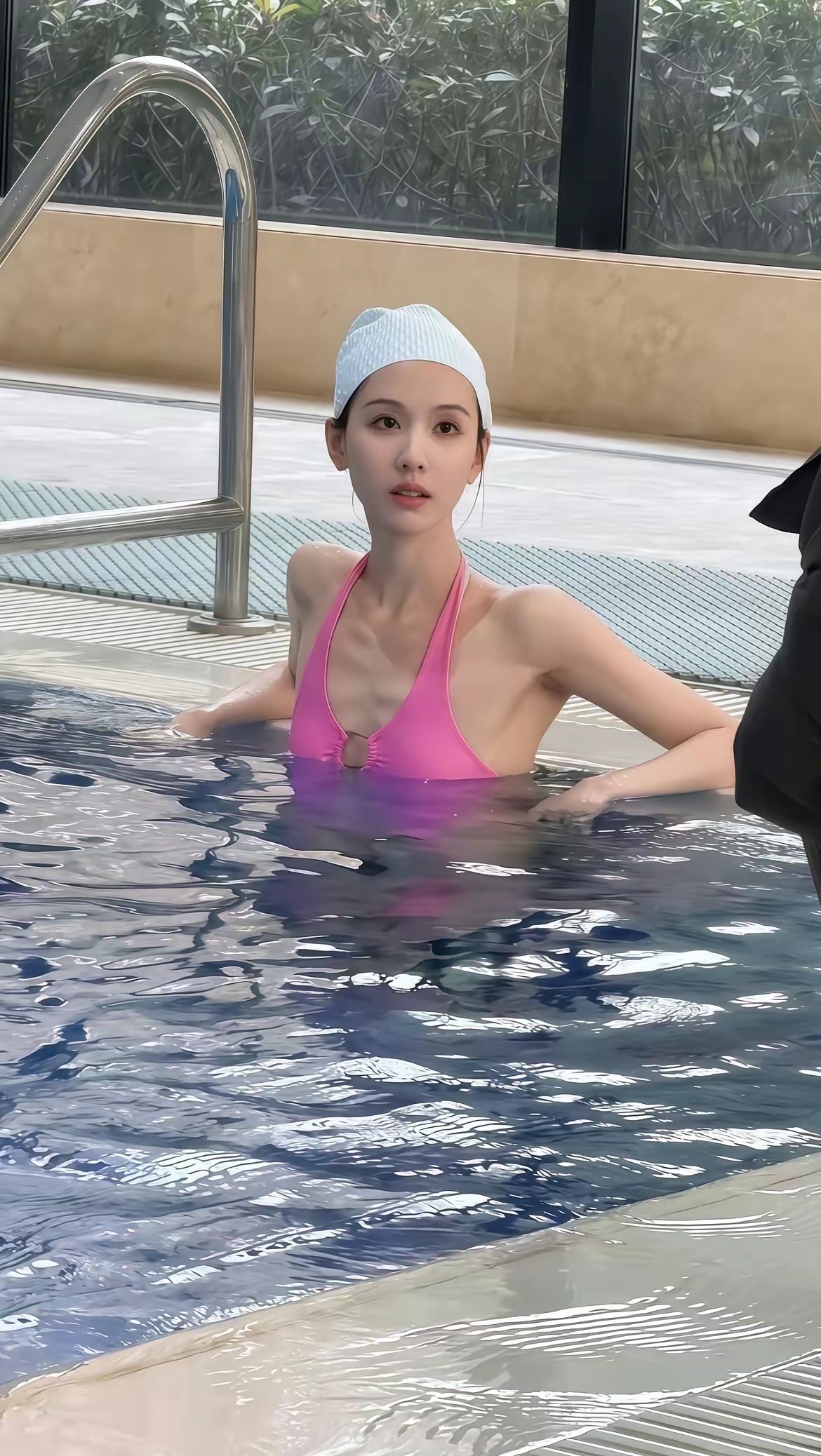 陈都灵粉色游泳照片!就是太瘦了,吃胖一点就好了!